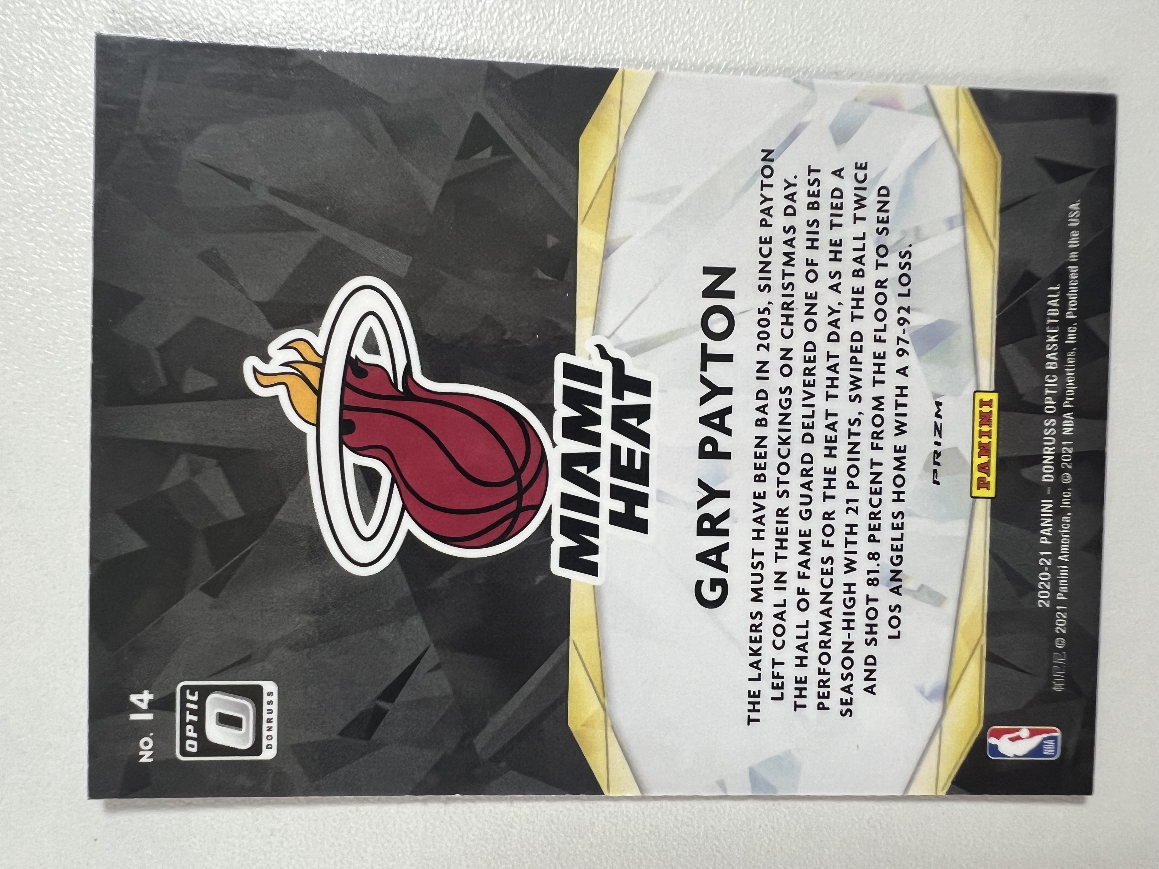 2020-21 Panini Donruss Optic Gary Payton #14 加里·佩顿 手套 迈阿密热火 杜蕾斯OPTIC系列 收藏凑套 卡品如图
