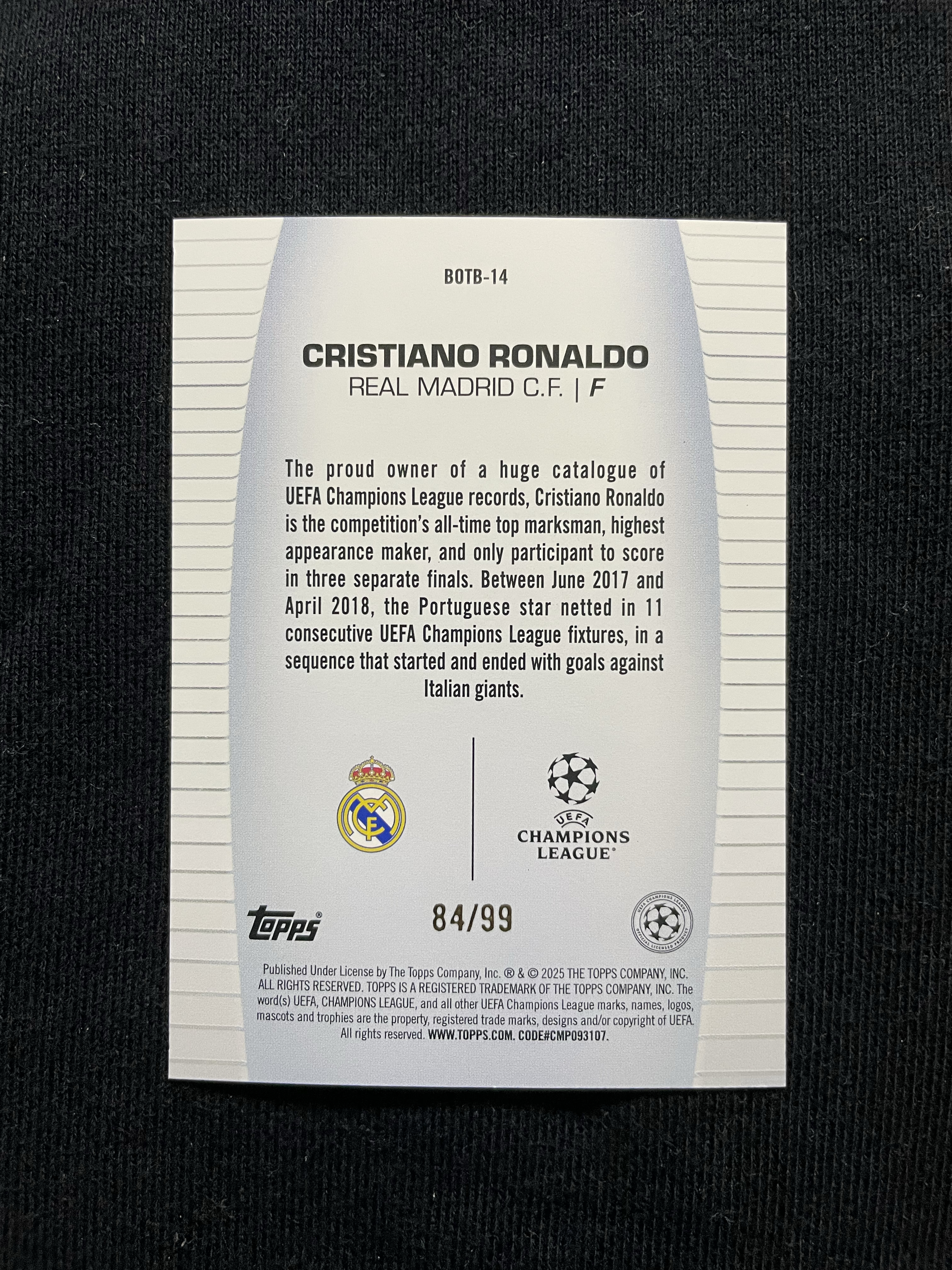 2025 Topps UCC Cristiano Ronaldo 【苦茶子拍卖】克里斯蒂亚诺 罗纳尔多 C罗 总裁 欧冠 Best Of The Best 特卡 99编 绿折 皇马 葡萄牙 卡品如图
