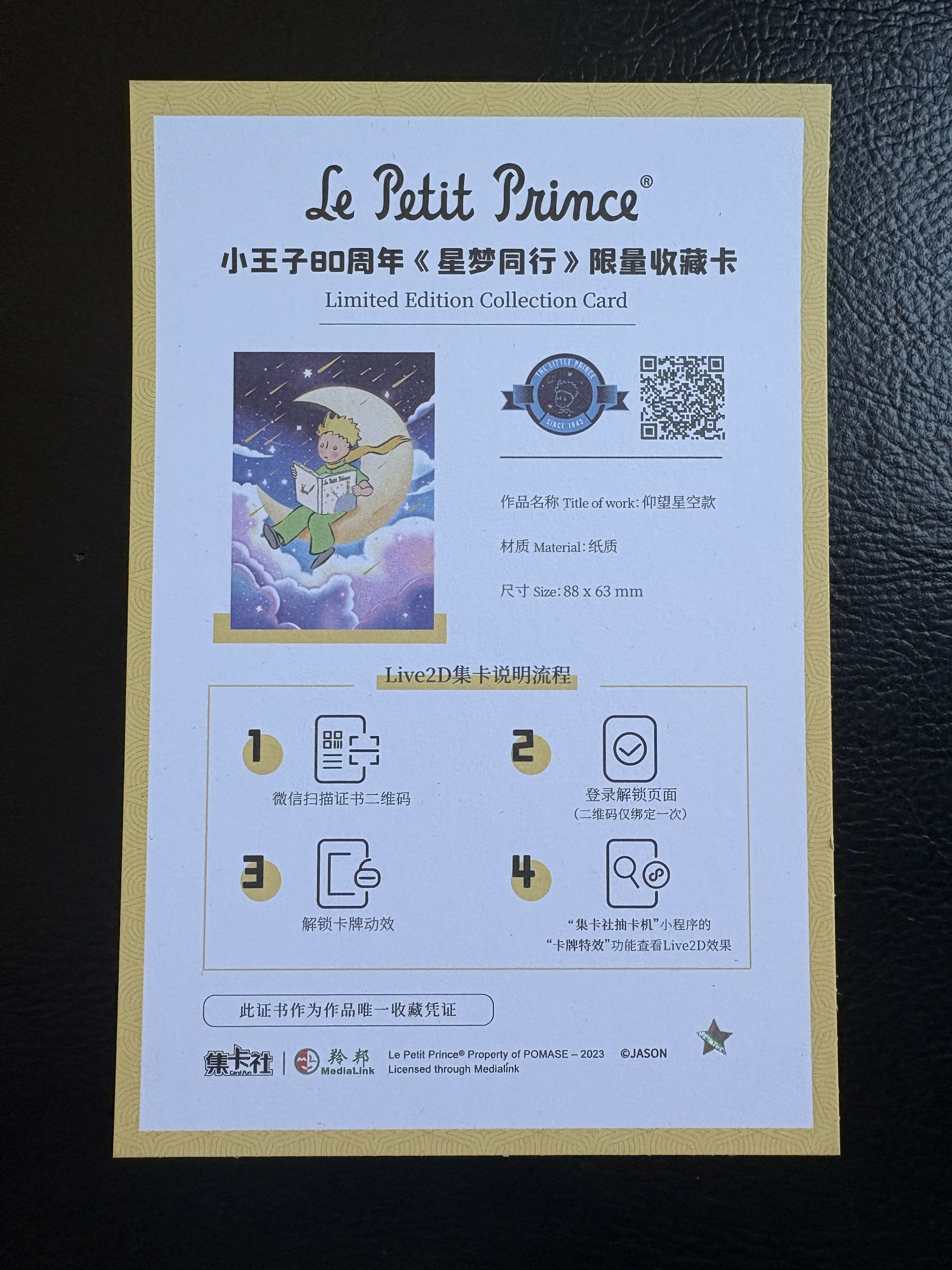 集卡社 小王子 正版授权小王子80周年《星梦同行》限量收藏卡 仰望星空款 配套精美展示卡砖 收藏佳品 不保卡品(王)