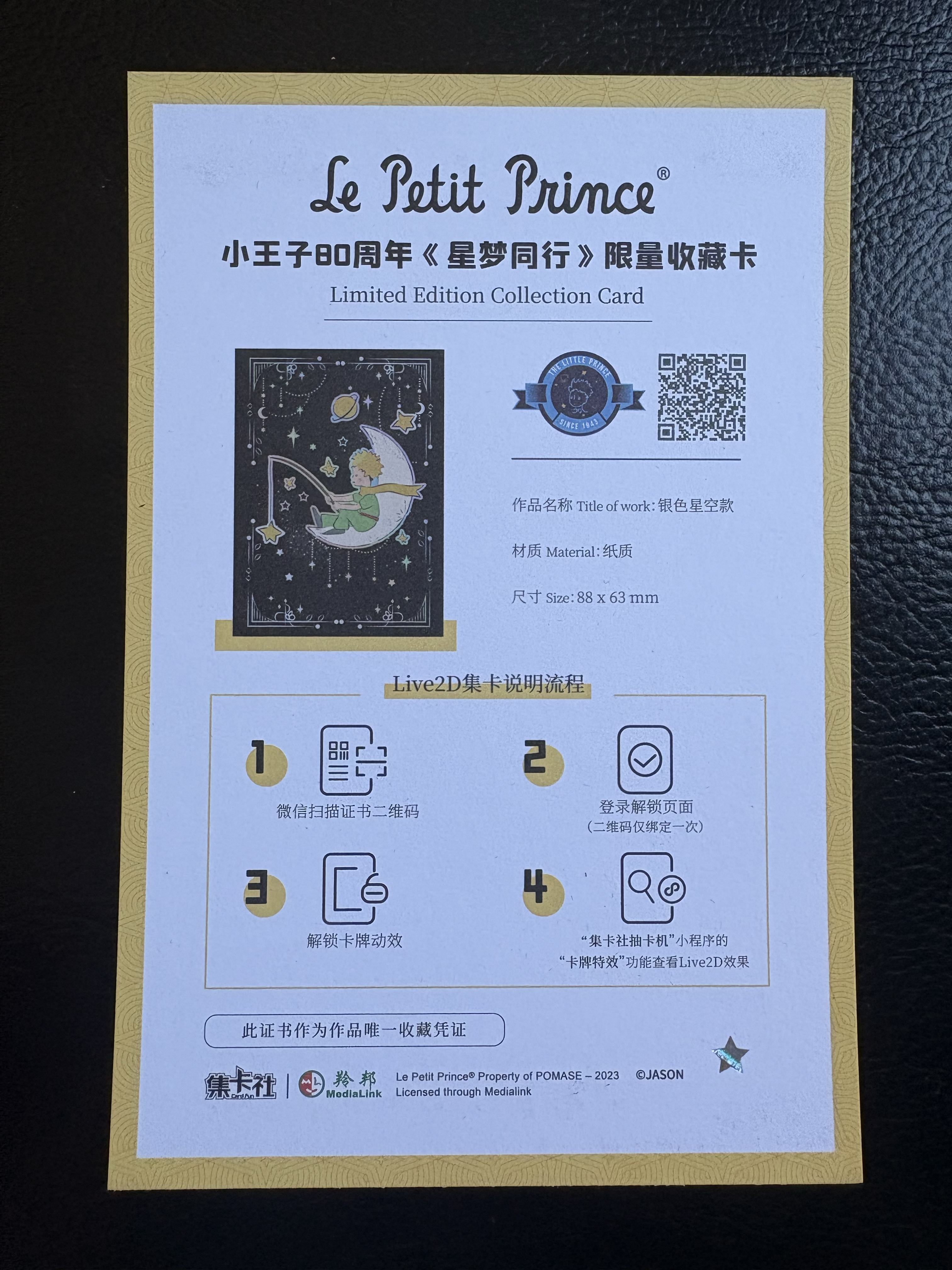 集卡社 小王子 正版授权小王子80周年《星梦同行》限量收藏卡 银色星空款(小隐藏) 配套精美展示卡砖 收藏佳品 不保卡品(王)