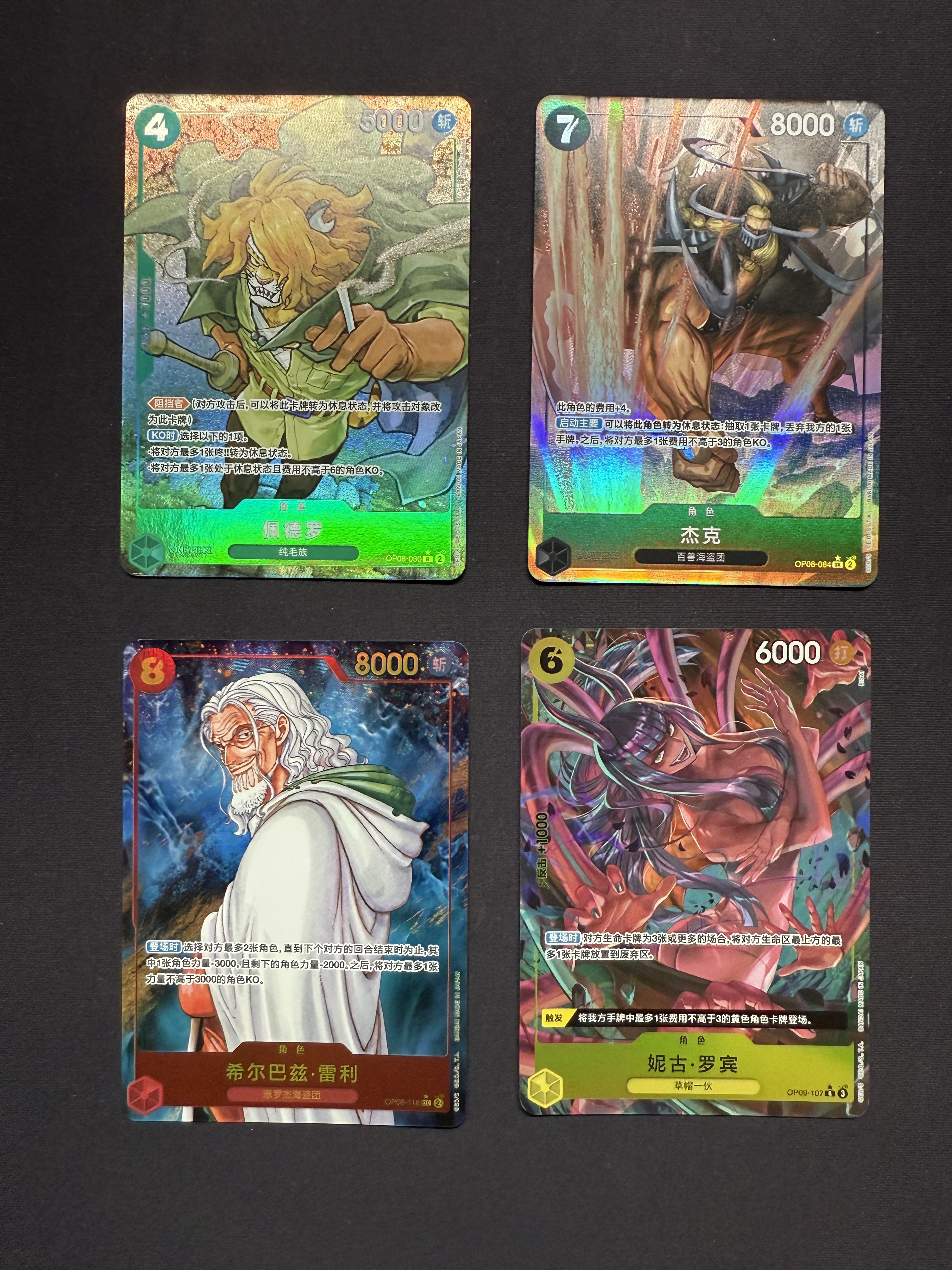 2024 ONE PIECE TCG chs 海贼王 OP08/09 简中 佩德罗 杰克 西尔巴兹·雷利 妮可·罗宾 闪卡 全图闪 异画 R SR SEC 4张打包 品相不保证「老夫子」151