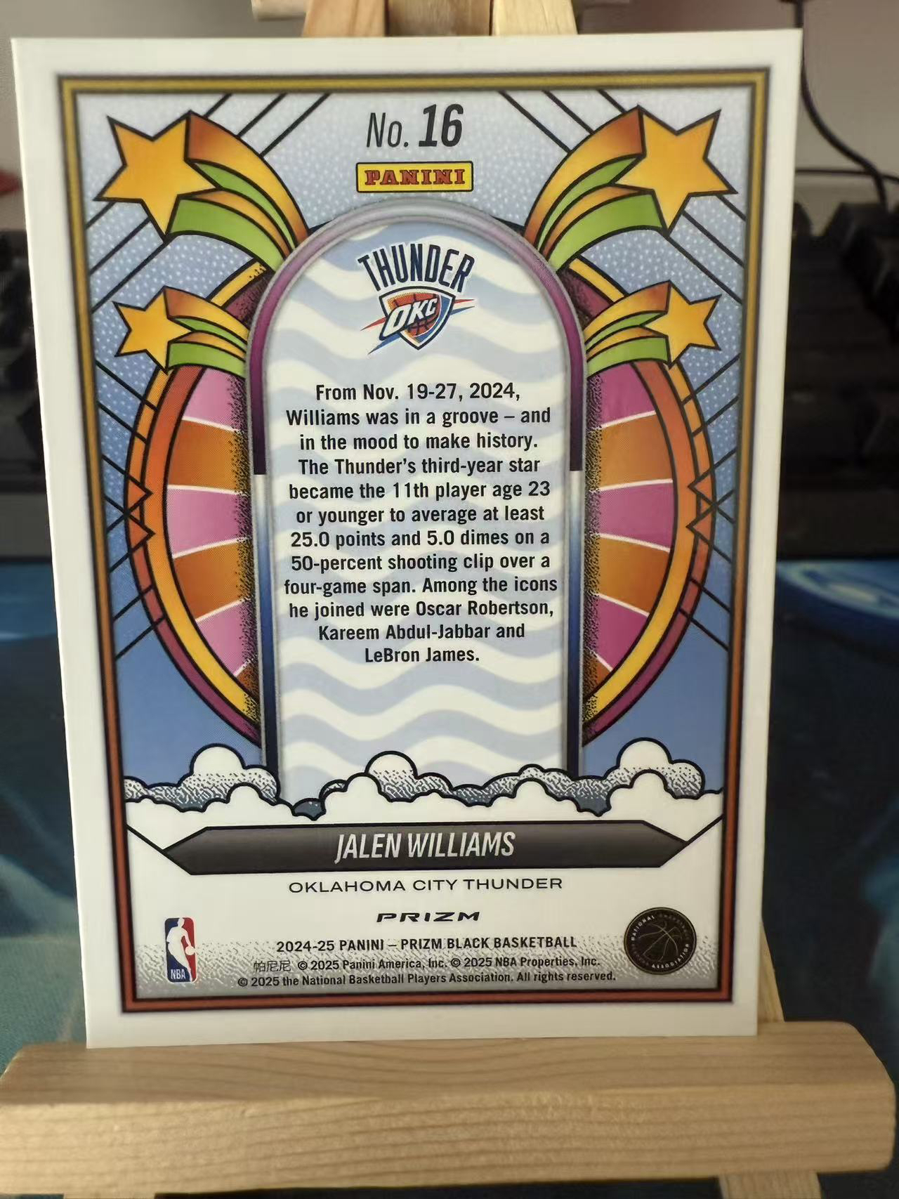 2024-25 Panini Prizm Jalen Williams Prizm Black Groovy 大比例 时髦特卡 杰伦 威廉姆斯 雷霆 SSR 收藏必备