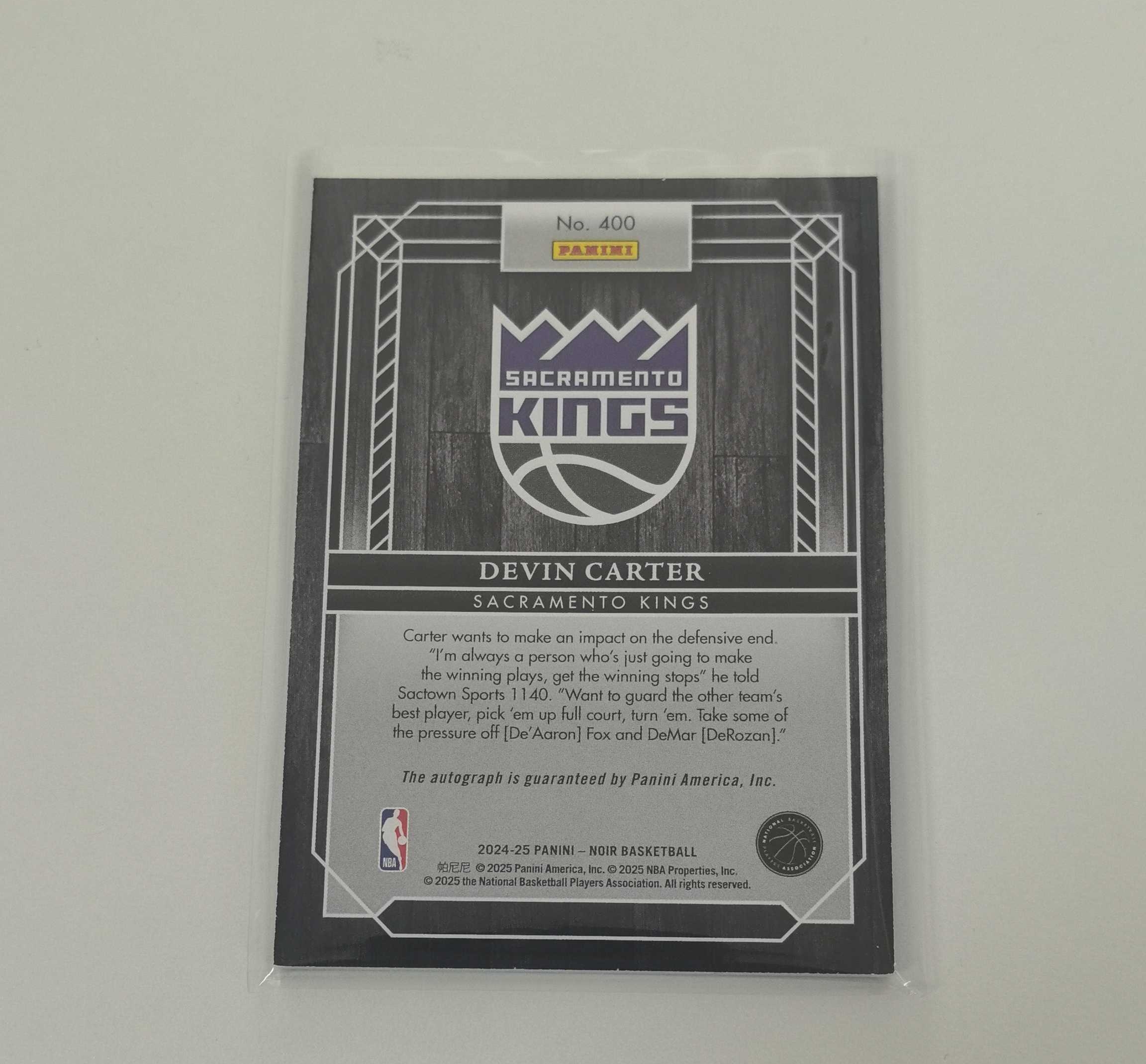 2024-25 Panini Noir Devin Carter 诺尔 国王 德文 卡特 新秀RC /99编 卡签 签字 微瑕如图