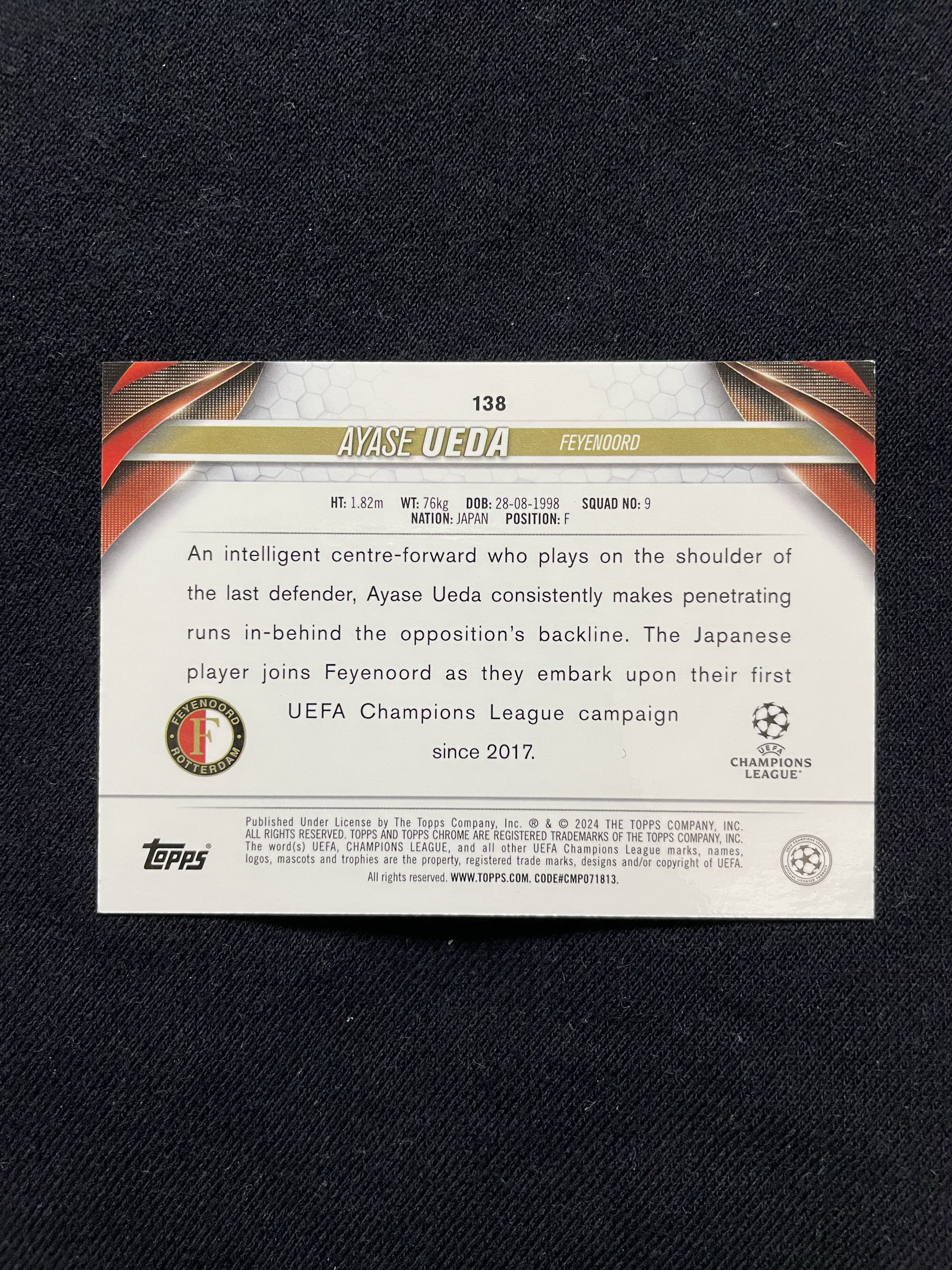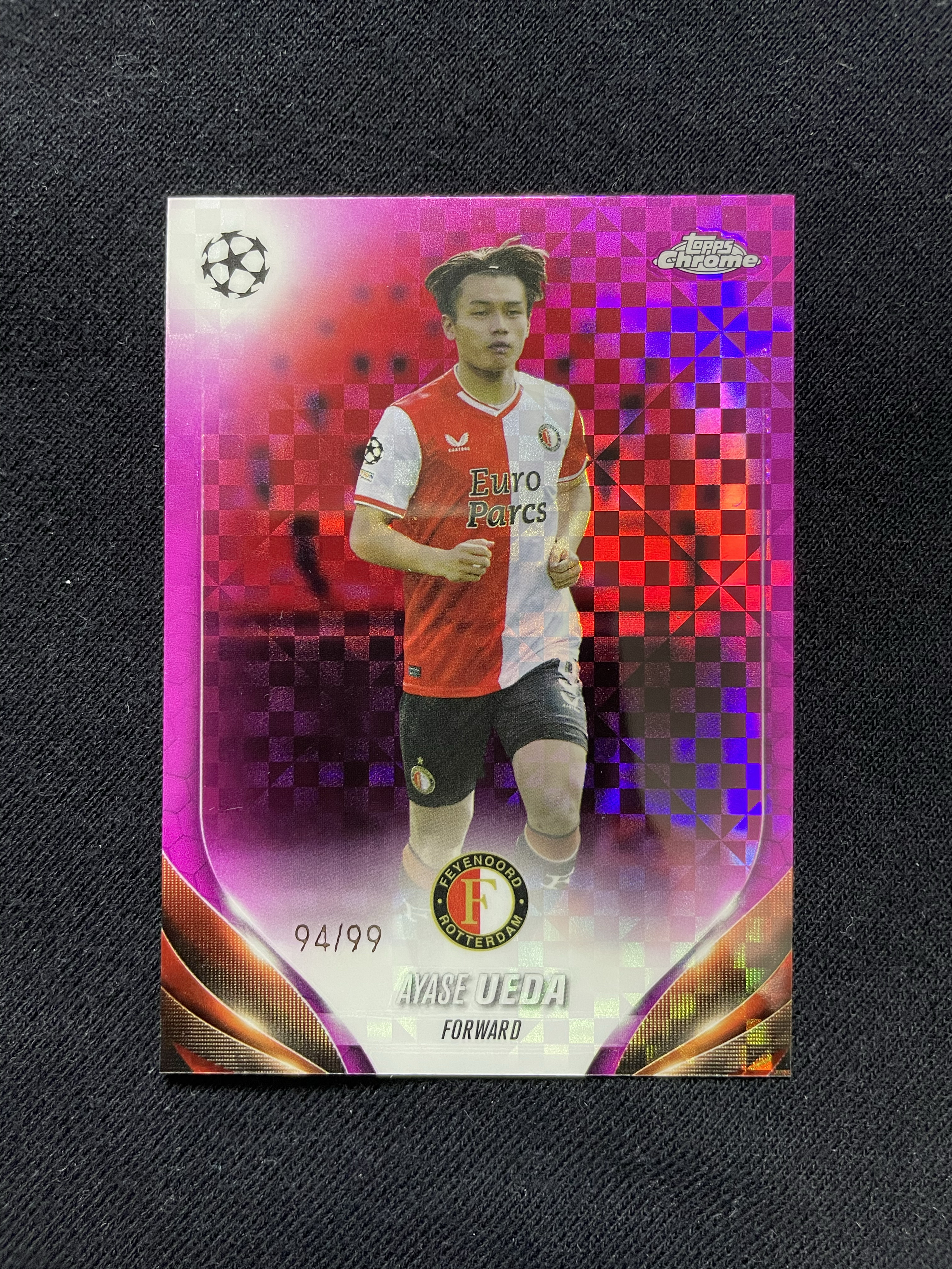 2024 Topps Chrome Ayase Ueda 【苦茶子拍卖】上田绮世 欧冠TC 99编 粉棋盘折 粉格子折 折射 费耶诺德 日本 卡品如图