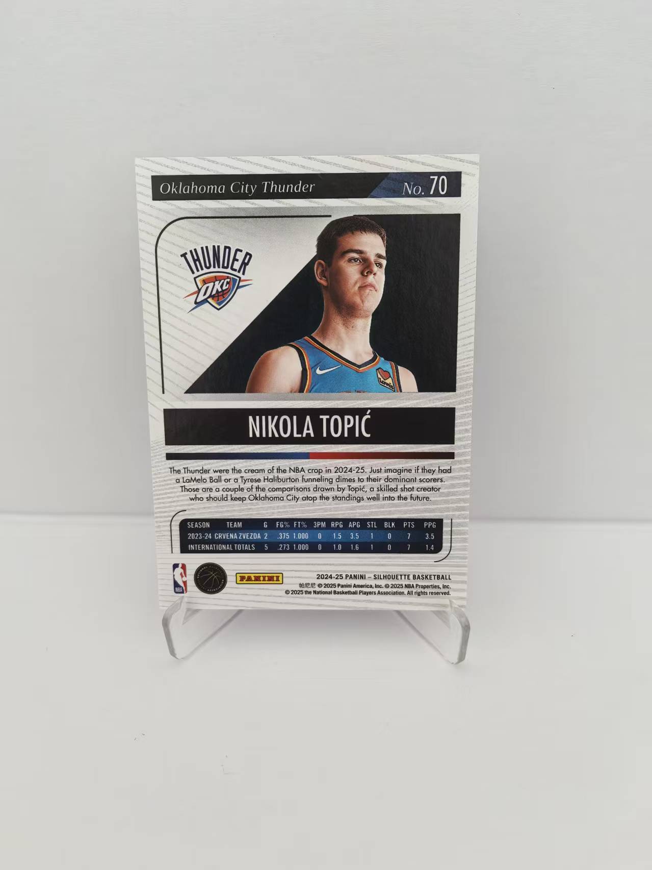 2024-25 Panini Silhouette Nikola Topic RC 雷霆 尼古拉 托皮奇 选秀年 剪影 铜平行 19/49编 限量稀有 低编 卡品如图 多多Y