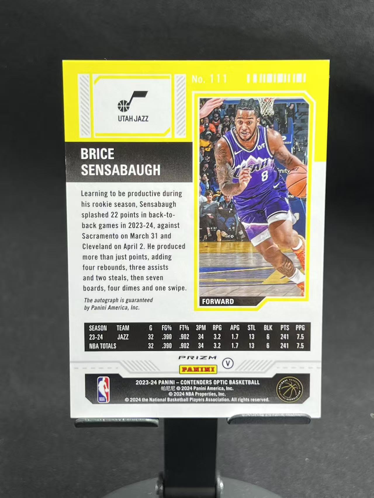 2023-24 Panini Contenders Optic Brice Sensabaugh RC 【WHY拍卖】森萨博 爵士 新秀 球票op 银折签 签字 卡签 通行卡品