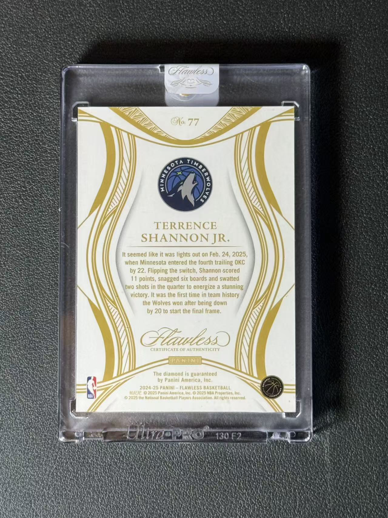 2024-25 Panini Flawless Terrence Shannon Jr. RC 手提 森林狼 新秀 小特伦斯 香农 小香农 /20编 钻石 Base 原封砖 黄老板