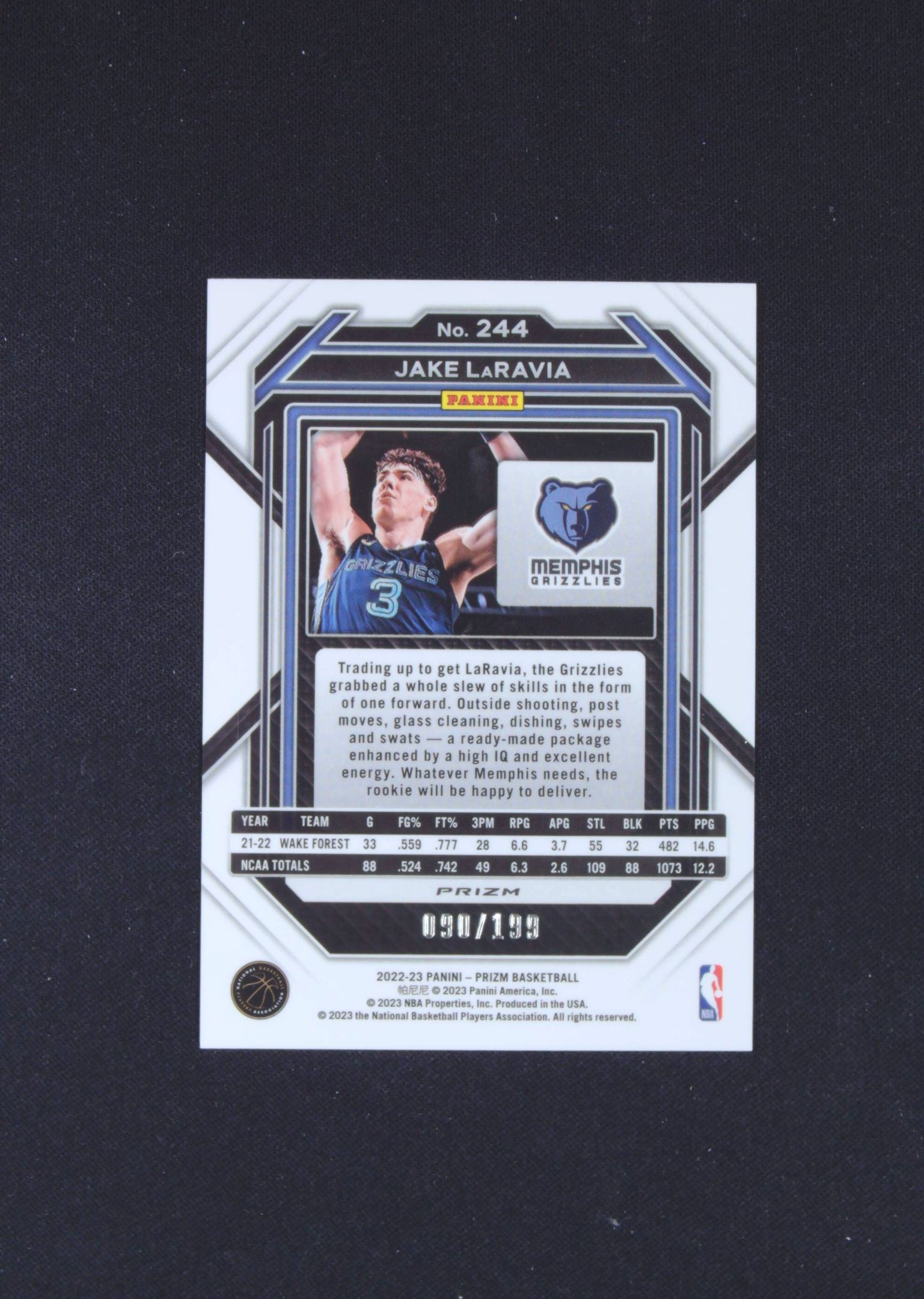 2022-23 Panini Prizm Jake LaRavia RC 【五月拍卖 顺丰空运】新秀 杰克 拉拉维亚 灰熊 PZ 折射 蓝折 199编 带编 卡品如图 收藏必备 暖暖47