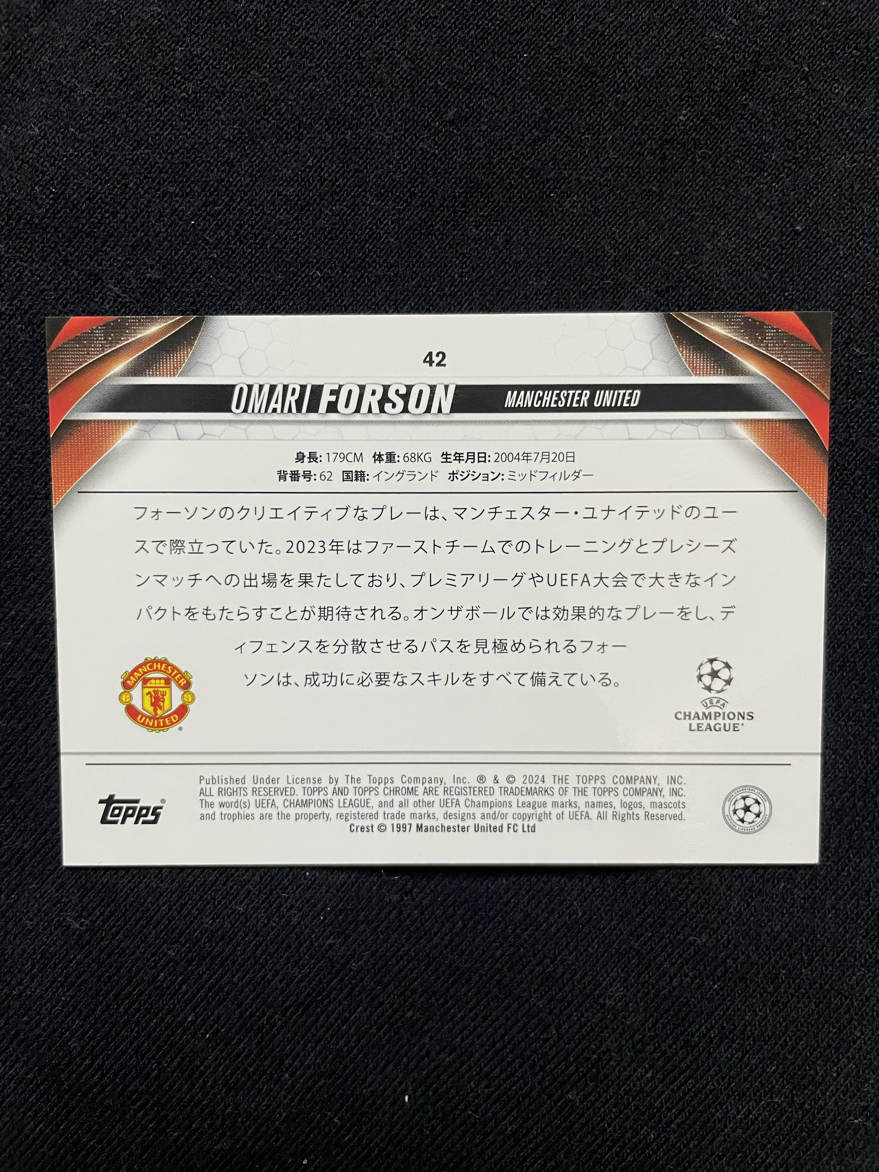 2024 Topps Chrome Omari Forson RC 【苦茶子拍卖】奥马里 福尔森 新秀 欧冠TC 150编 金mojo折 折射 曼联 卡品如图
