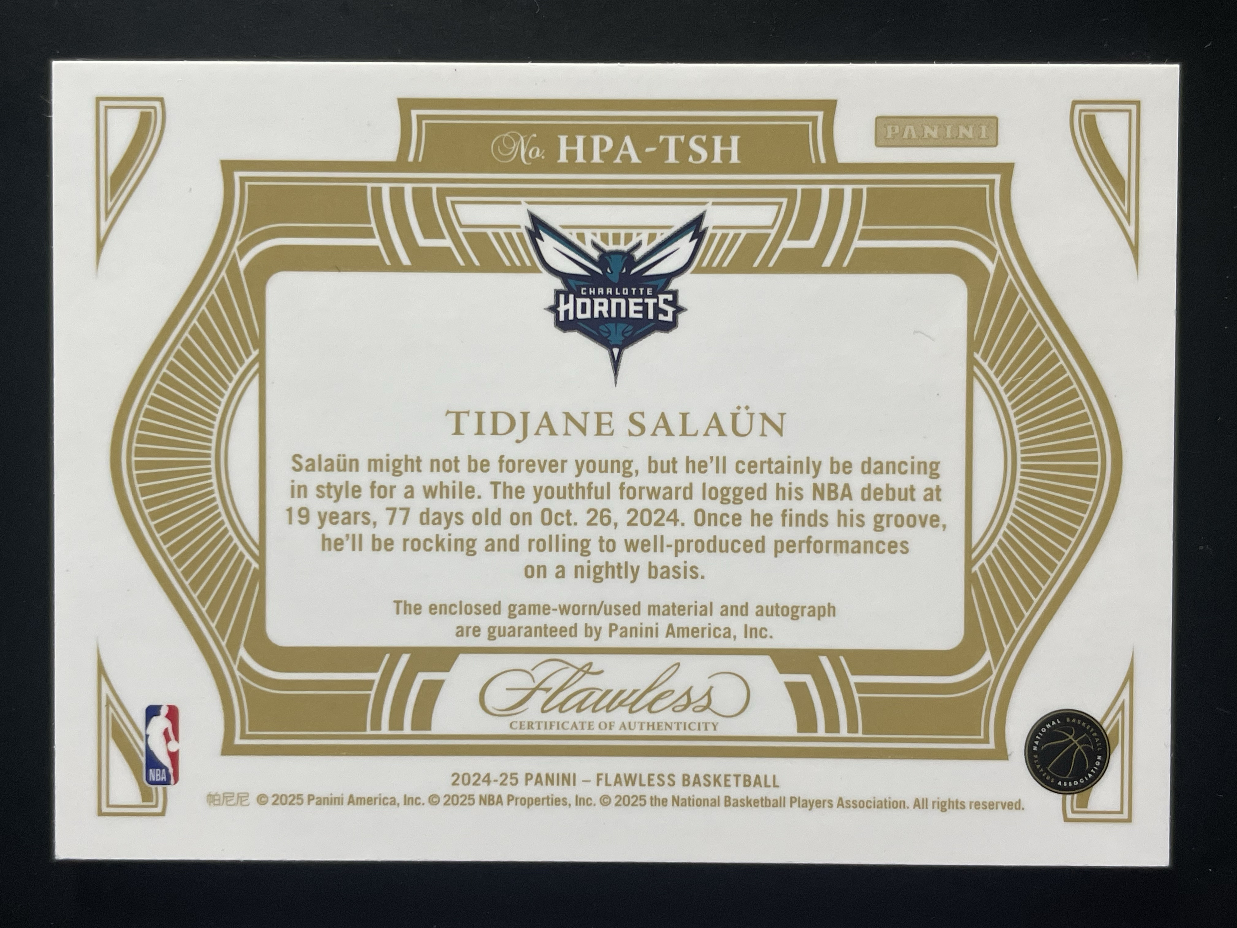 2024-25 Panini Flawless Tidjane Salaun RC 【晨记拍卖】黄蜂 提贾尼 萨隆 新秀 RC 手提 15编 红闪 rpa 球衣切割 签字 卡签 最高端系列