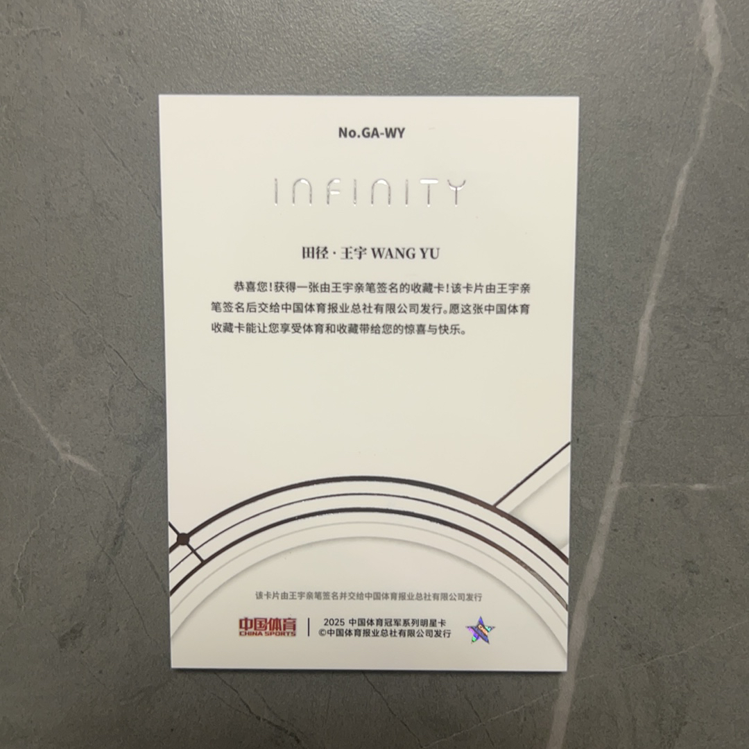 2025 奇卡 QICA 无限 冠军 中国体育 田径 王宇 银折 /49编 璀璨星河 签字卡 元年 奥运会冠军 世界冠军(干脆面代卖-拍前看商品描)