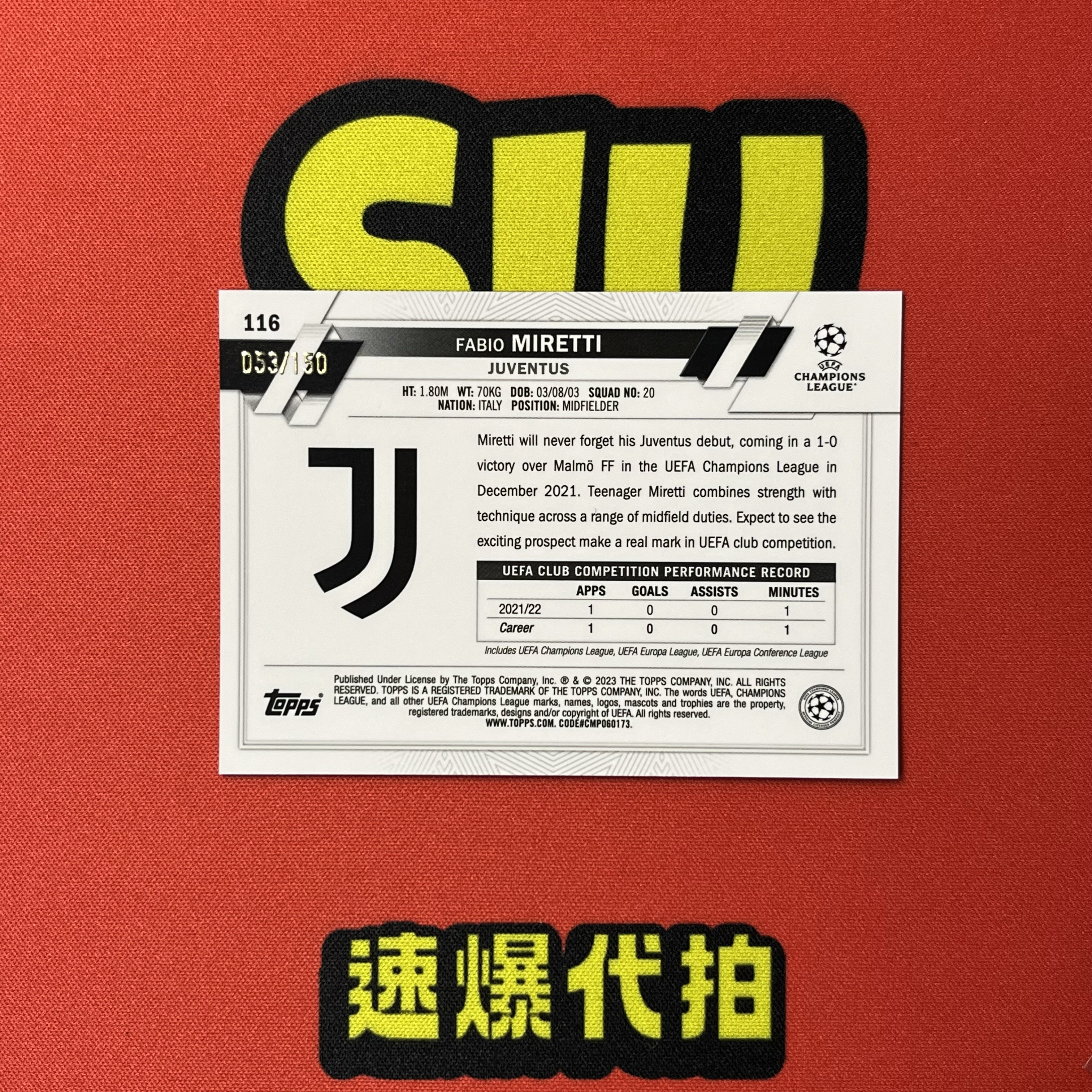 2022-23 Topps Chrome Fabio Miretti 意甲 尤文图斯 法比奥 米雷蒂 TC 053/150编 蓝折 意大利 欧冠 无卡夹 卡品如图 hhh 【速爆代拍】