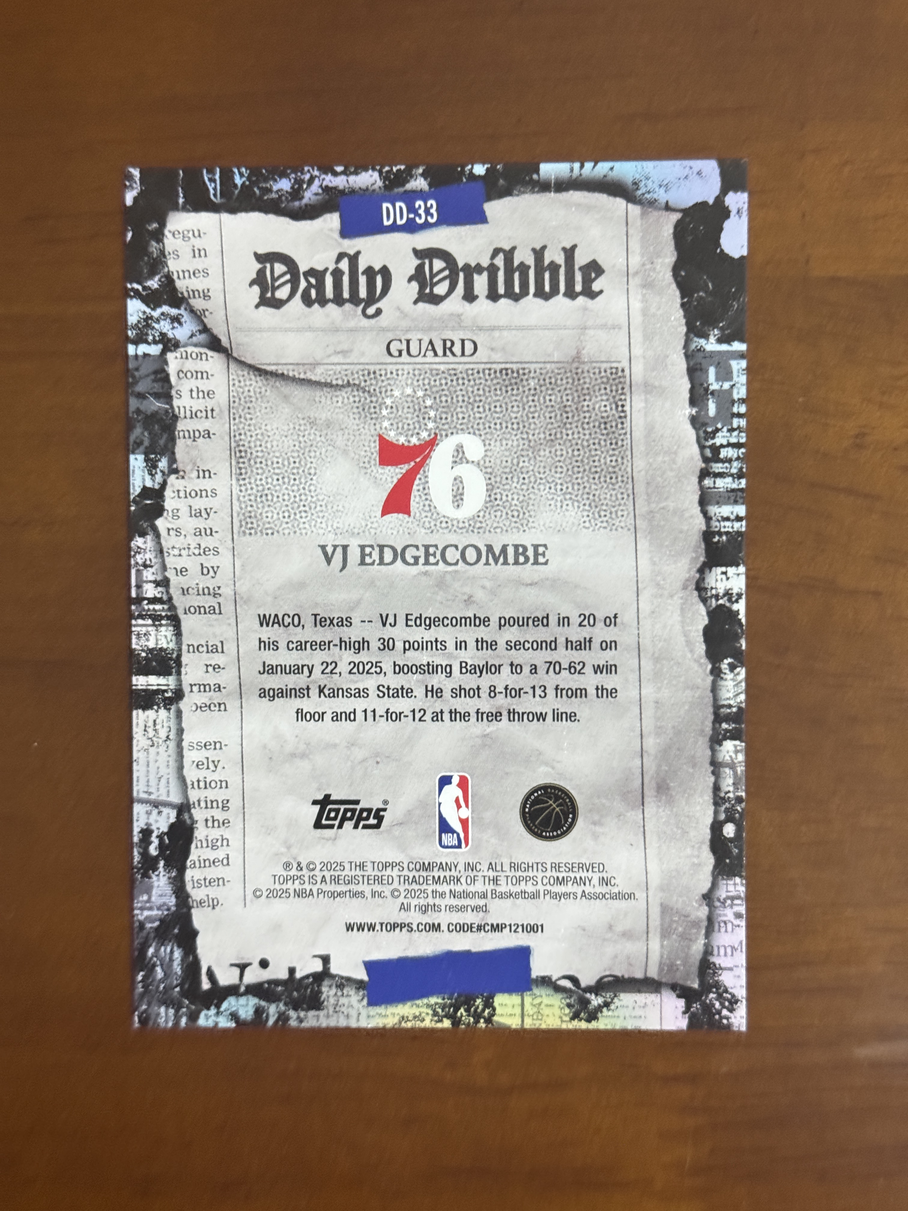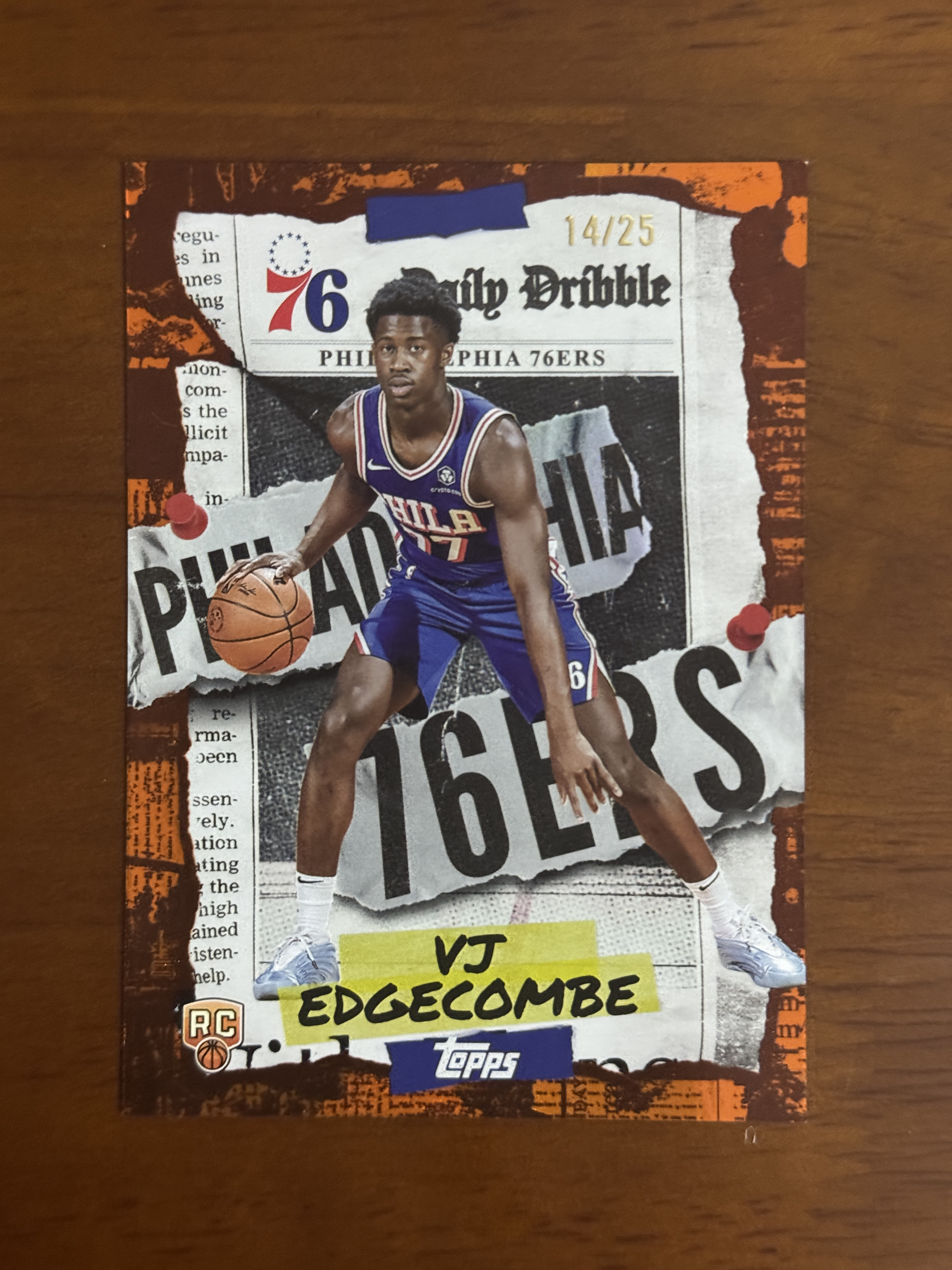 2025-26 Topps flagship VJ EDGECOMBE VJ 埃奇库姆 14/25编 橙折 Daily Dribble 每日运球 特卡 探花 新秀 RC 76人 首秀砍34分 全网首张