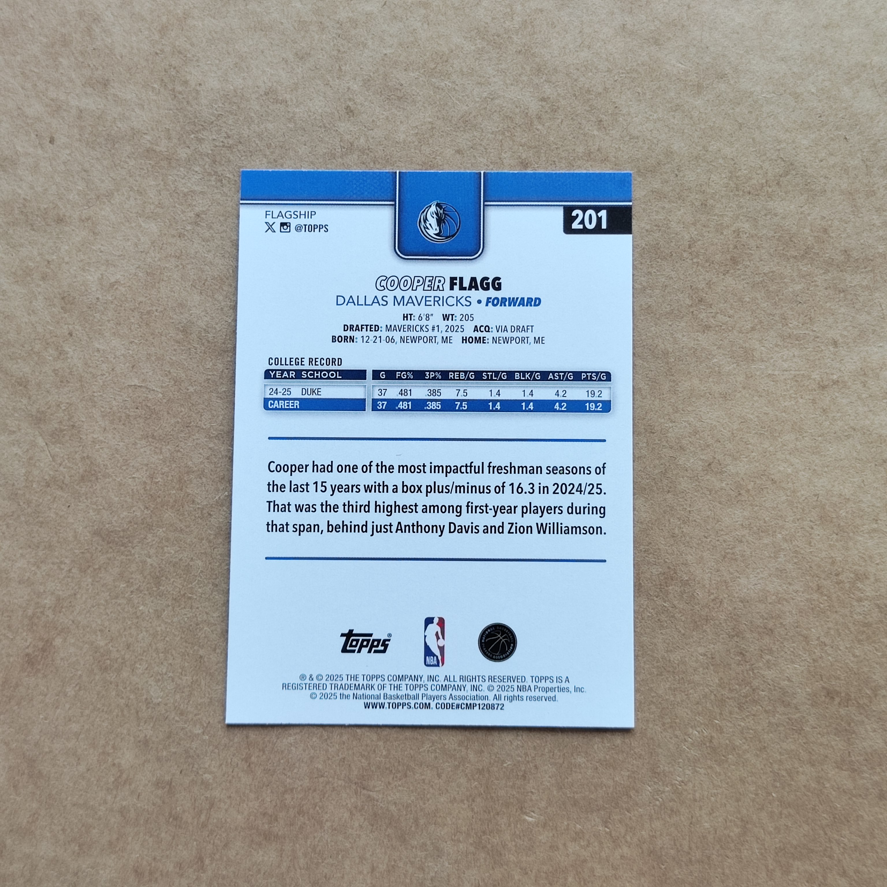 2025 【HADE拍卖-免费上拍】 flagship Cooper Flagg RC 独行侠 库珀 弗拉格 新秀 状元 Base - 大热 第一版正base HD0023-archer