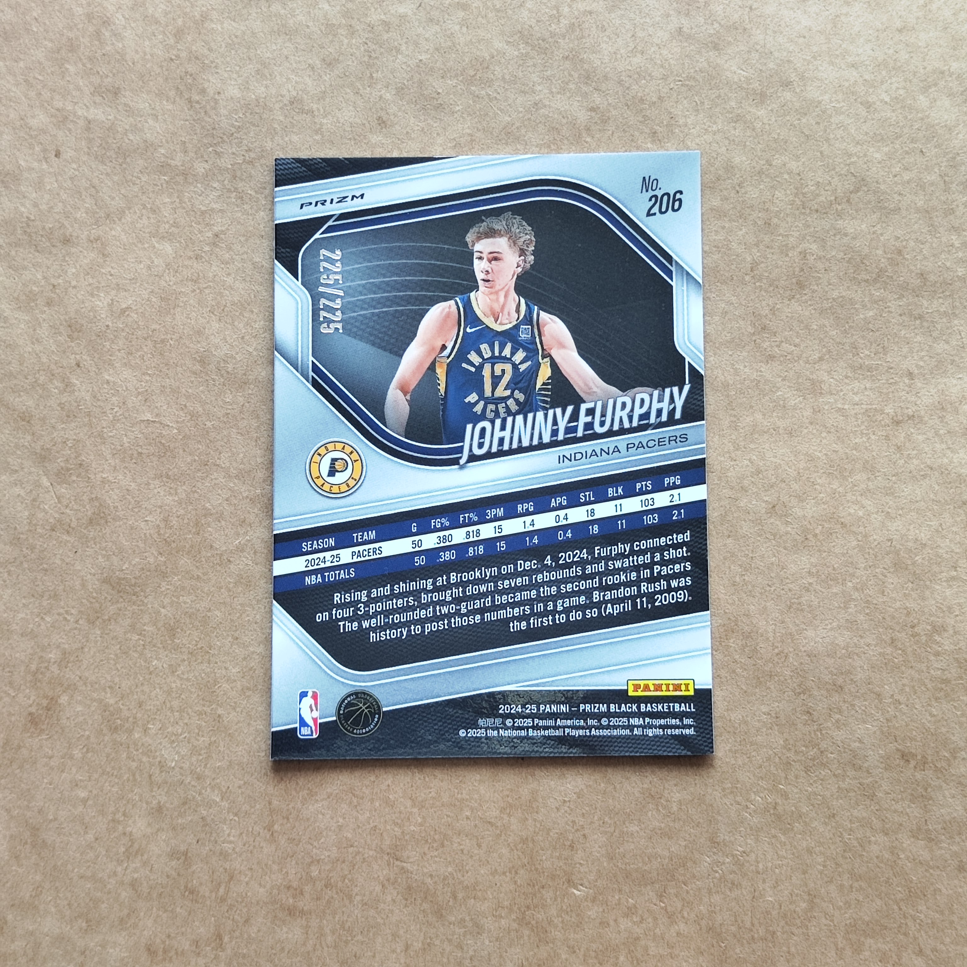 【HADE拍卖-免费上拍】2024-25 Prizm Black Johnny Furphy RC 步行者 新秀 约翰尼 弗菲 225/225编 尾编 球皮折 HD0023-archer
