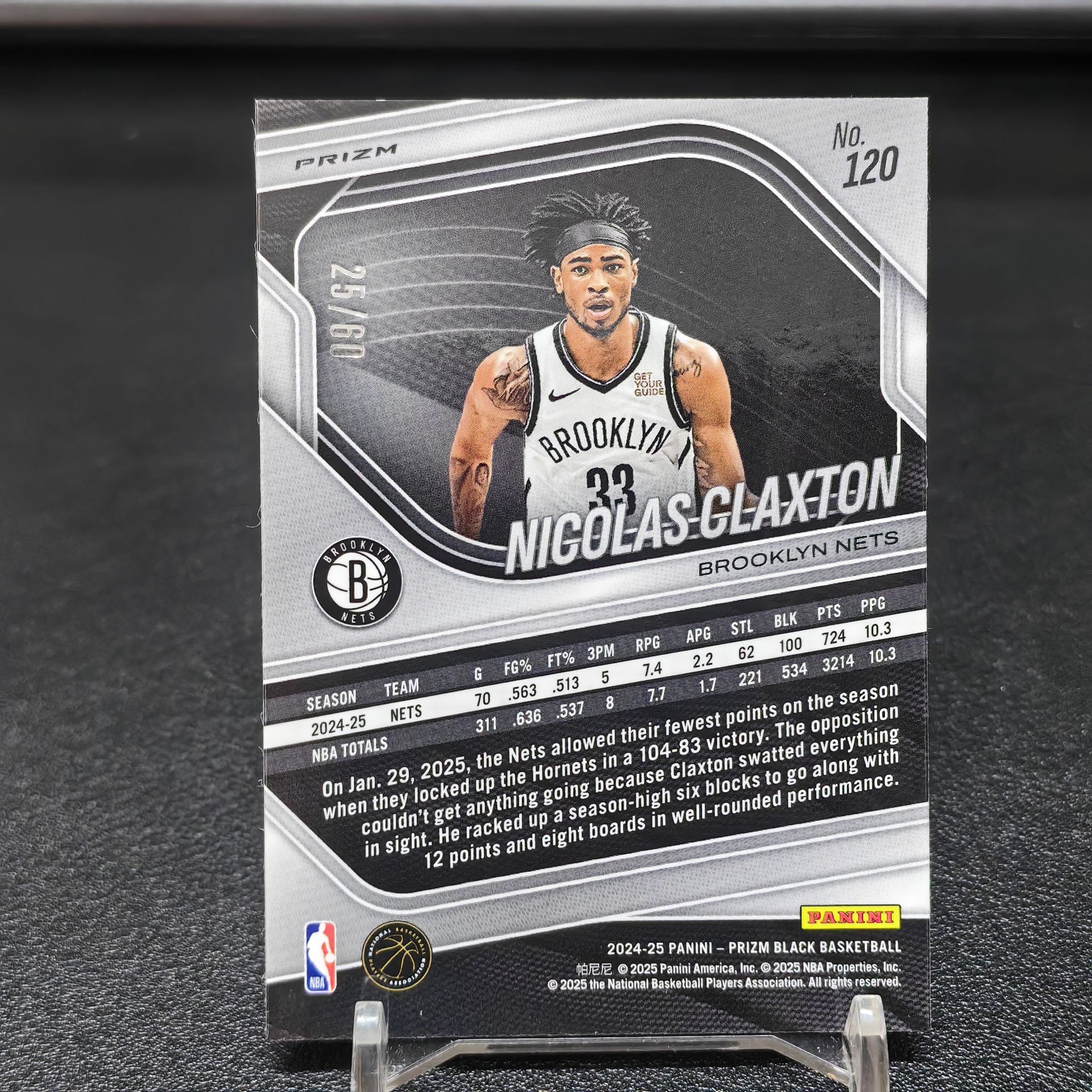 【浩行拍卖 截标预付82%】2024-25 Panini Prizm Black Nicolas Claxton 篮网 克拉克斯顿 橙波纹折 折射 25/60编 专收必备 瑕疵看图「莓鸥」1028C01龘