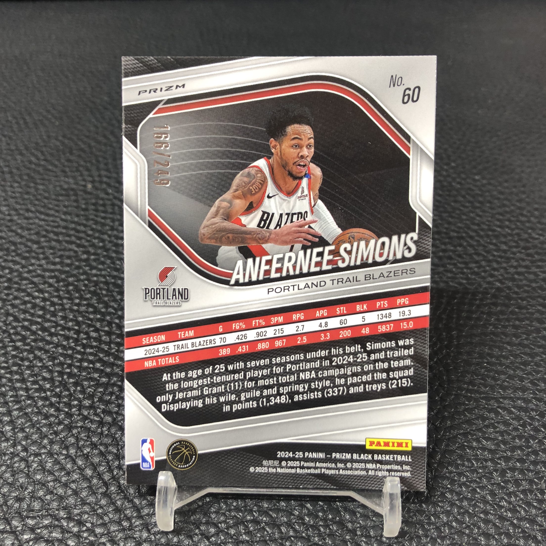 【浩行拍卖 截标预付82%】2024-25 panini prizm black anfernee simons 开拓者 安芬尼 西蒙斯 银瀑布折 折射 166/249编 专收必备 瑕疵看图「馨语」1028J01驡