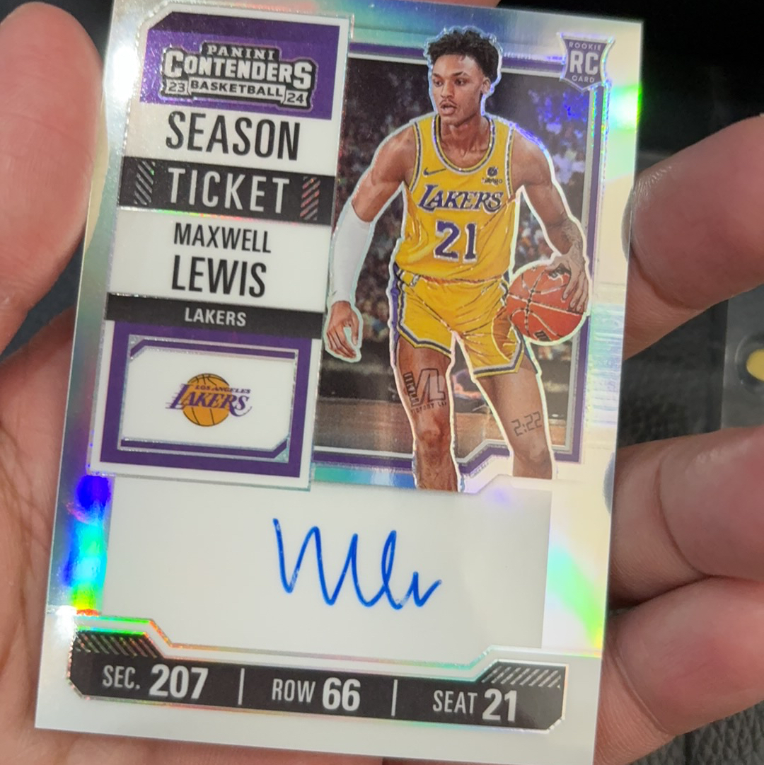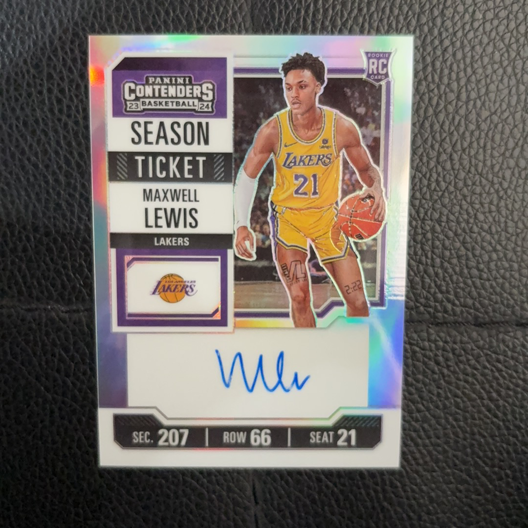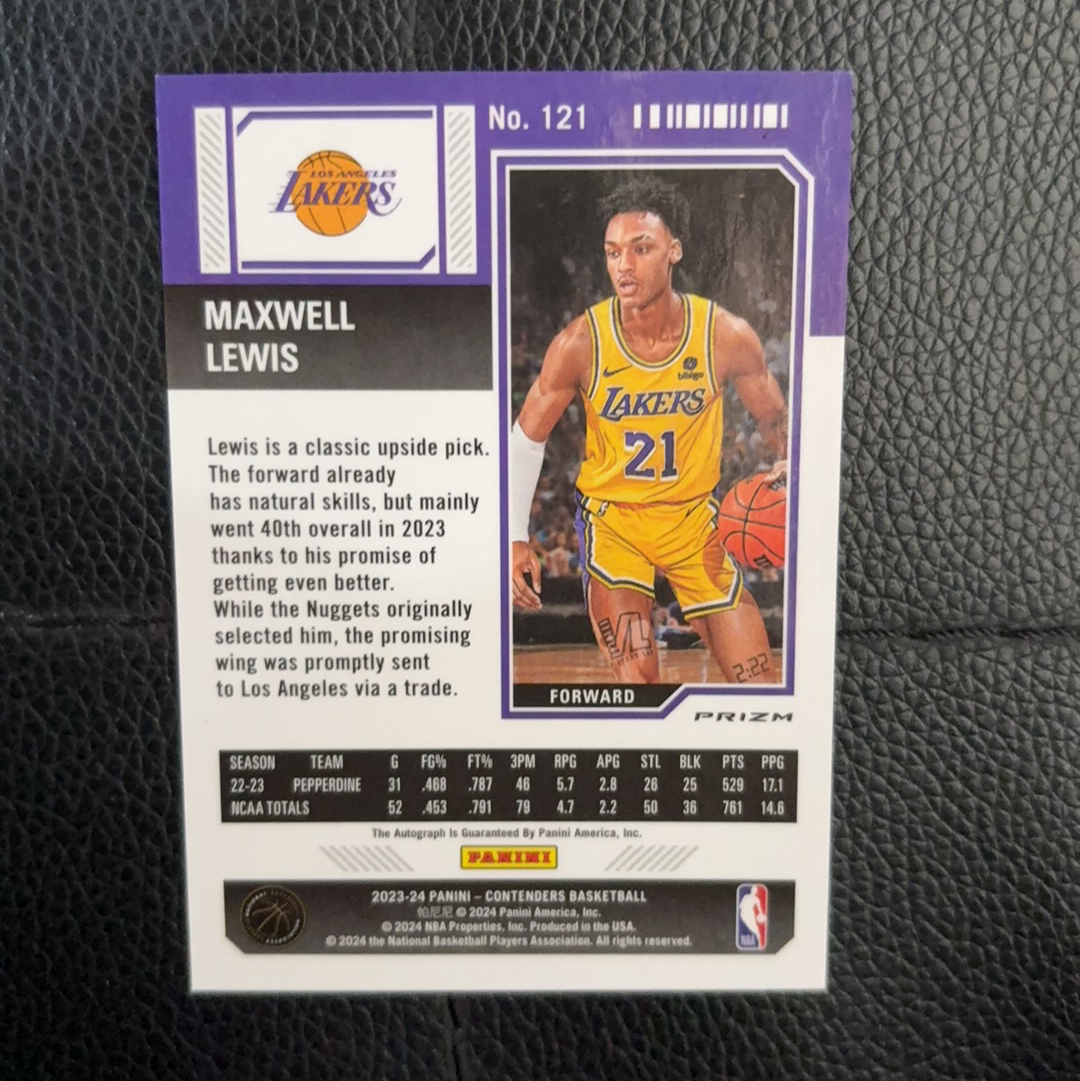 2023-24 Panini Contenders Maxwell Lewis RC 【克里斯拍卖】球票 湖人队 马克斯韦尔 刘易斯 新秀 RC 银折 折射 卡签 签字 签名 墨迹瑕疵如图