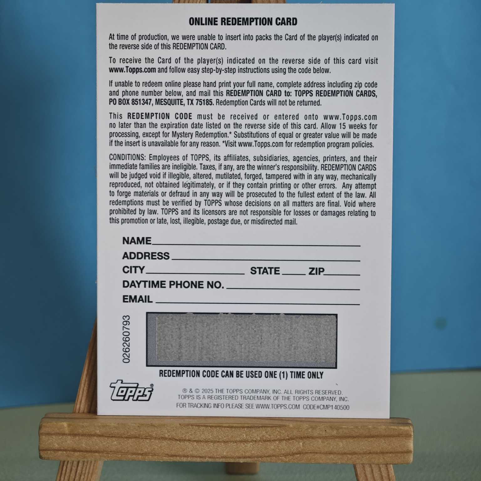 欢迎光临小米粥代卖,本店承接球星卡、TCG、影视卡等卡片代卖服务,有意老板可添加微信客服咨询,vx:18861858959,代卖手续费最低至0元。以下是拍卖细则,拍前需熟知,出价即视为默认接受。①发货一般情况默认顺丰快递陆运江浙沪12元其他地区18元,【新疆省台湾省香港澳门等国内地区联系到付,其他地方不支持到付】只发默认地址,不接受站内信留言转寄,修改地址请在付款界面自行修改。同时购买了多标卡的请等待合并订单后再付款。如果快递发出后因快递公司原因发生丢失/损毁的,本店不负责赔付。②卡品如图,厚卡有轻微白边属于正常现象!镜面有细小划痕属于正常现象,请注意!有些卡品拆出来即如此!有疑问可以发站内信或者微信索要细节图!如无特殊说明均为通行品。IMM,NOIR,金书等系列厚卡老卡有白边白角属于正常卡品,镜面卡签有小划痕属于正常通行品相,评级卡砖上的划痕和破损不属于品相问题,新秀银折不保证金标,要评级追求金标者请直接购买金标。③不支持累计!拍下后请于规定3天内付款,逾期未付款按规定投诉封号处理!④所有上拍的卡片一般单价高于20元的卡都有卡具保护,如额外需要卡具可站内信留言,另外购买。最后希望给各位客官带来一次美好的拍卖体验,有任何疑问,请在站内信提前沟通,有做的不好的还望多多包涵!