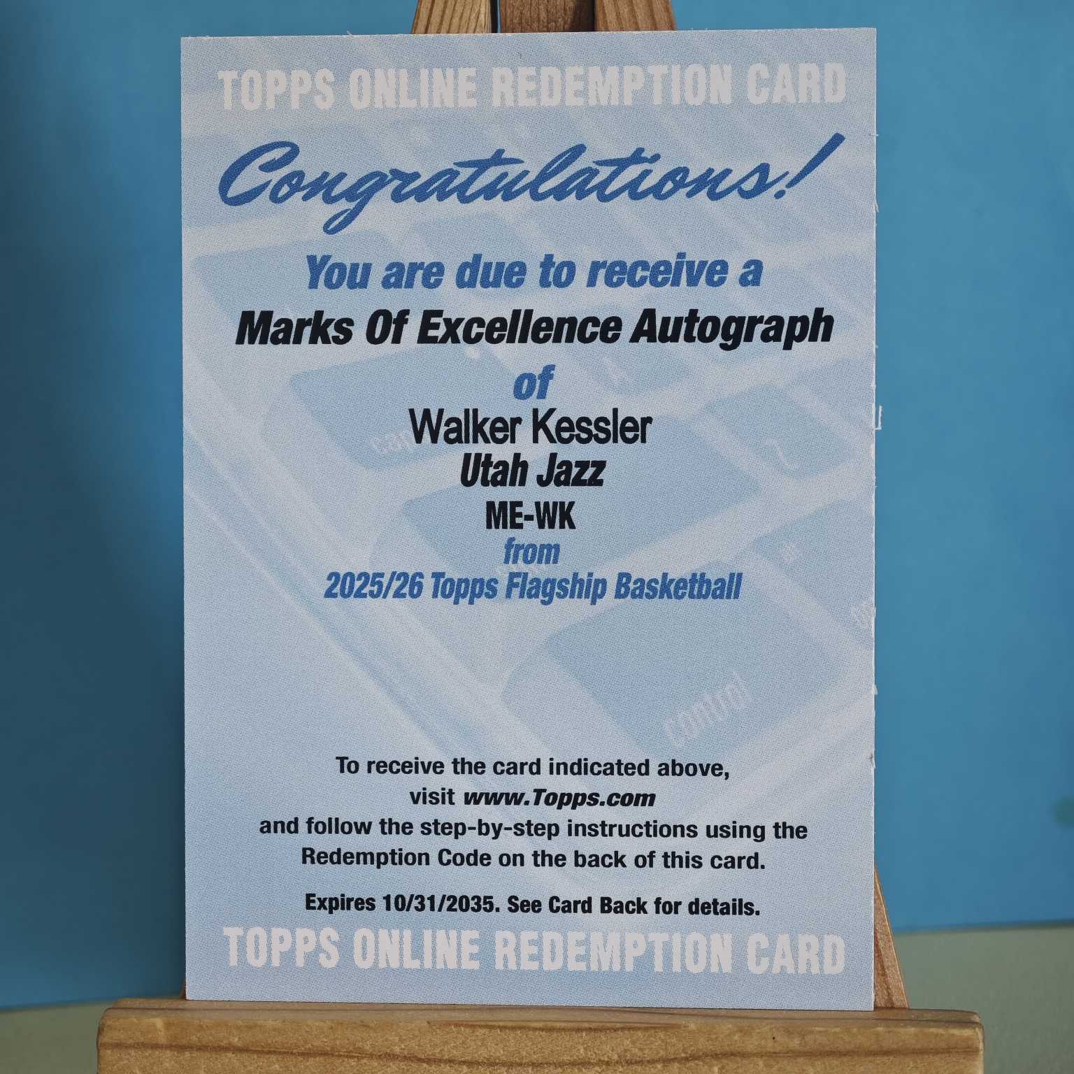 2025-26 Topps hobby 篮球 Walker Kessler 签字 交换板 只发板 marks of excellent 签字 爵士 沃克 凯斯勒 li