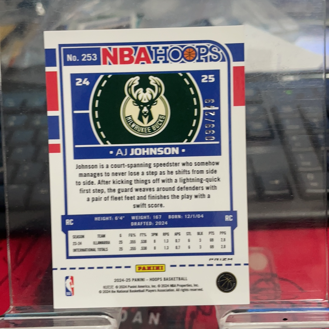 2024-25 Panini Hoops AJ Johnson RC AJ 约翰逊 新秀 249编 紫折 雄鹿 实卡超美 收藏必备