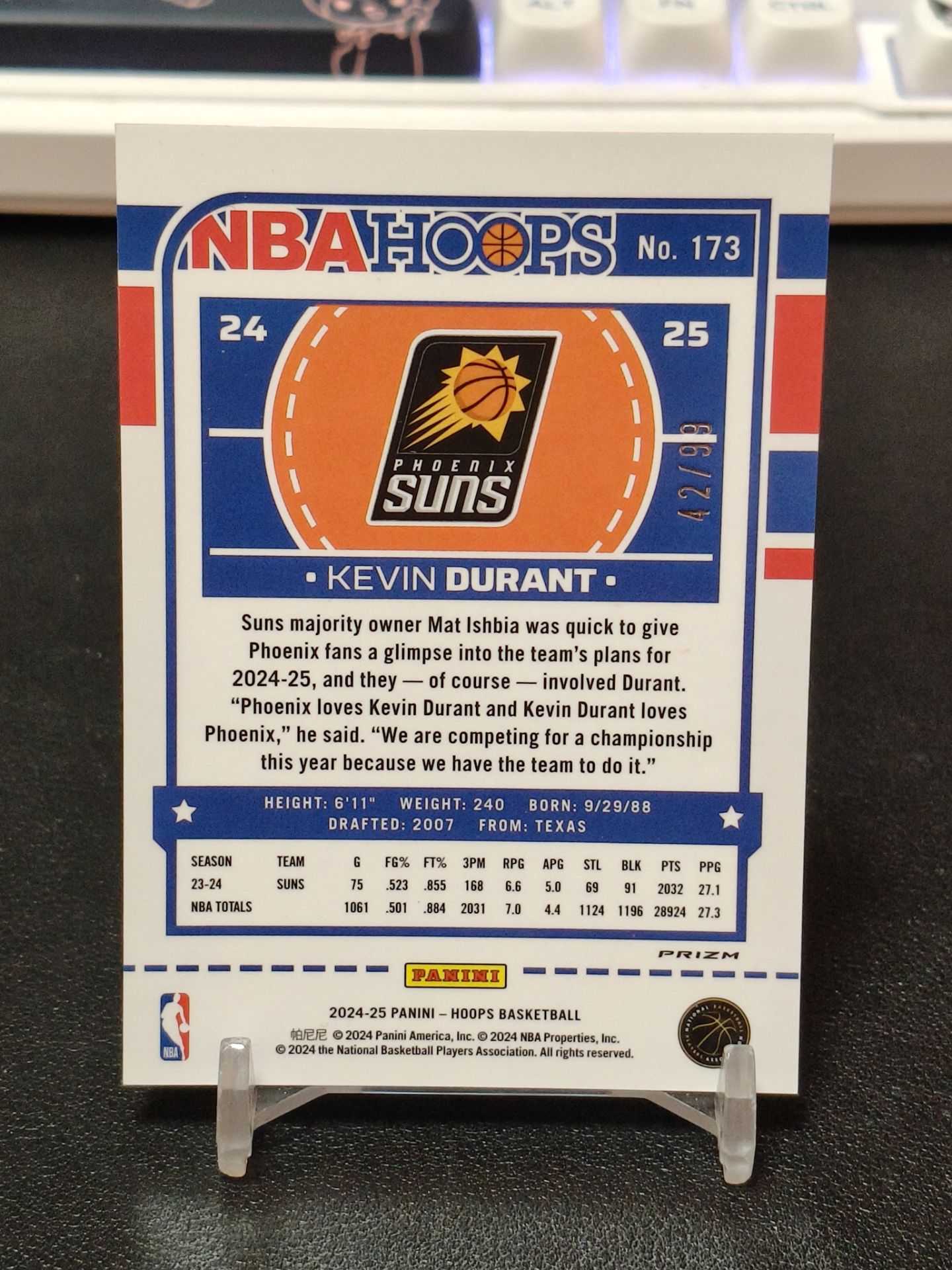 【浩行拍卖 截标预付82%】2024-25 panini hoops kevin durant 太阳 凯文 杜兰特 死神 KD 银波纹折 折射 42/99编 专收必备 瑕疵看图「启稻」1028F03祺兿