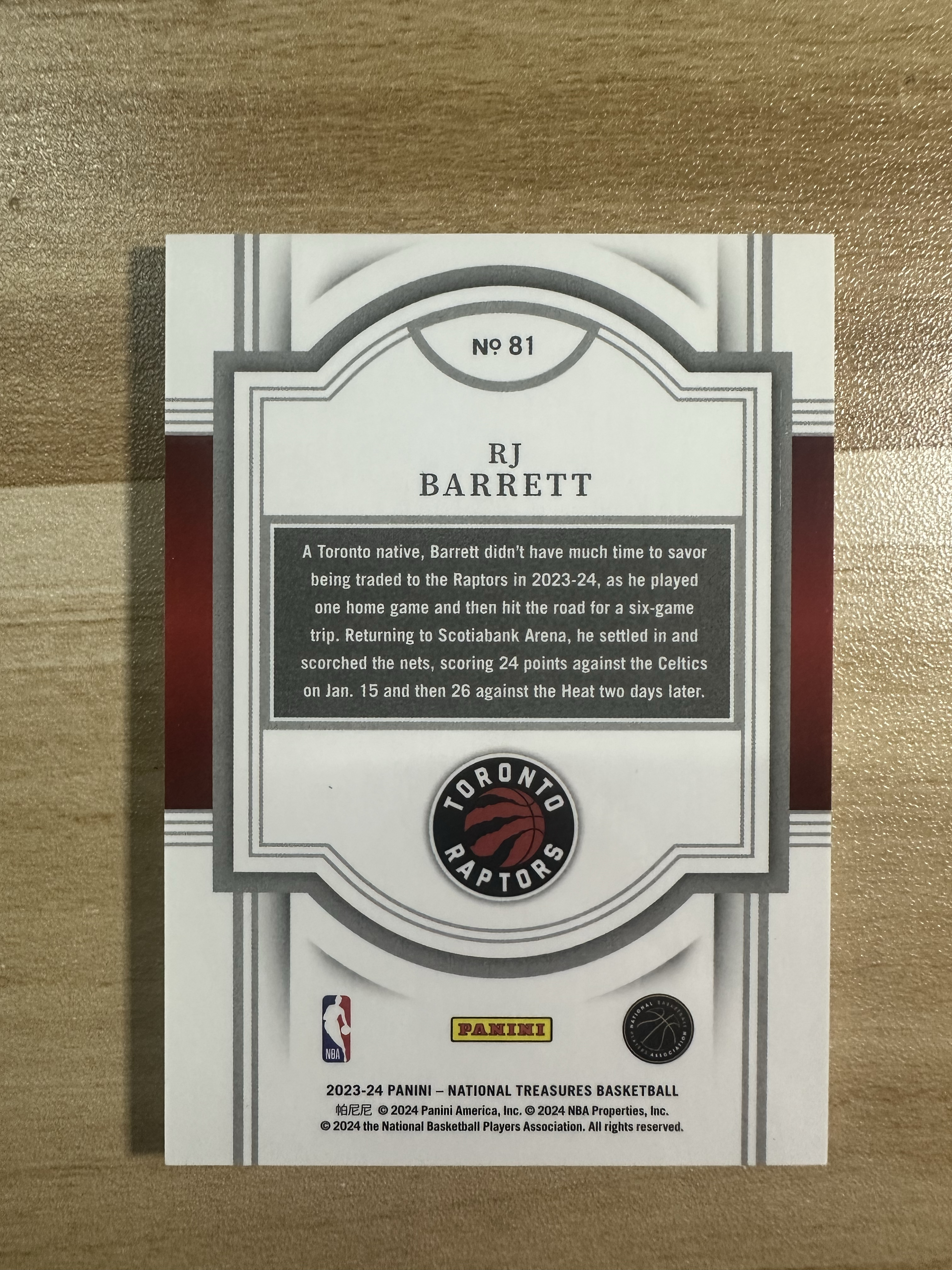 2023-24 Panini National Treasures R.J. Barrett 篮球 国宝 RJ 巴雷特 2/3编 正base 超低编 猛龙 大狙 卡品如图 介意勿拍