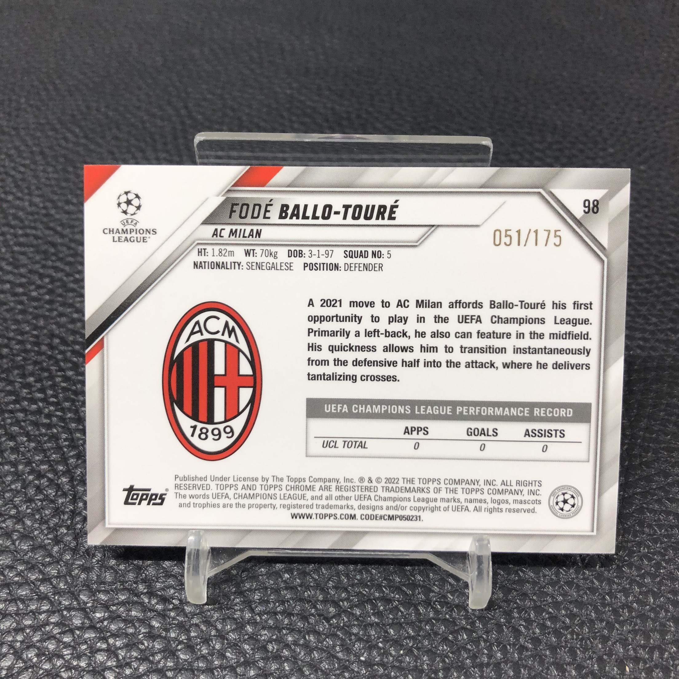 【浩行拍卖 截标预付82%】2022 topps Chrome Fode Ballo Toure 欧冠 AC米兰 福德 巴洛 图雷 RC 新秀 粉折 折射 51/175编 专收必备 瑕疵看图「馨语」1028J02驡