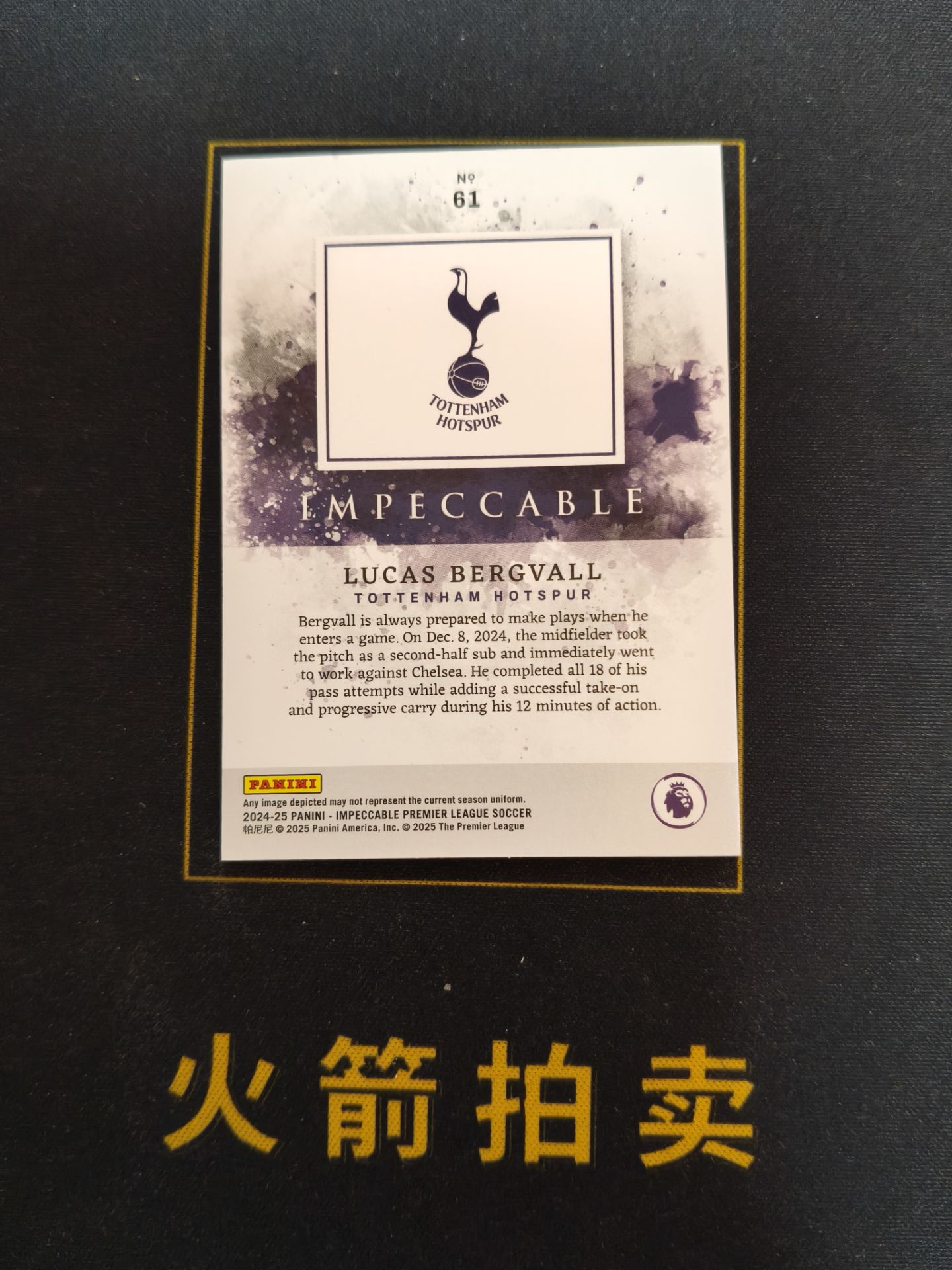 【火箭拍卖 截标预付82%】2024-25 panini impeccable lucas bergvall 小真金 英超 热刺 卢卡斯 贝里瓦尔 RC 新秀 18/25编 低编 专收必备 瑕疵看图「MT0317」1028G01兿
