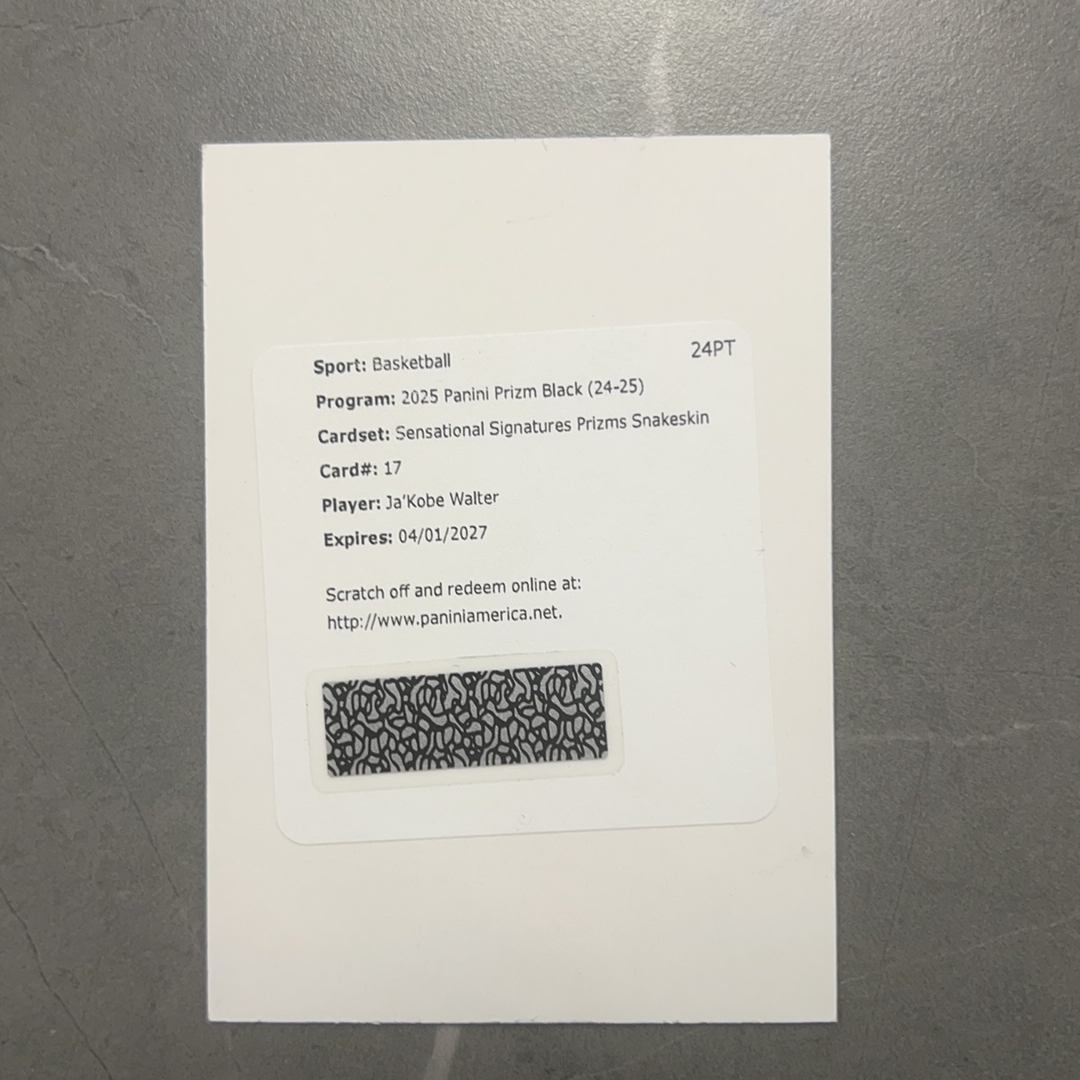 2024-25 Panini Prizm Black  Ja'Kobe Walter 新秀RC 贾科比 沃尔特 猛龙 签字 新秀签 蛇皮折 大比例 只发板(干脆面代卖-拍前看商品描)