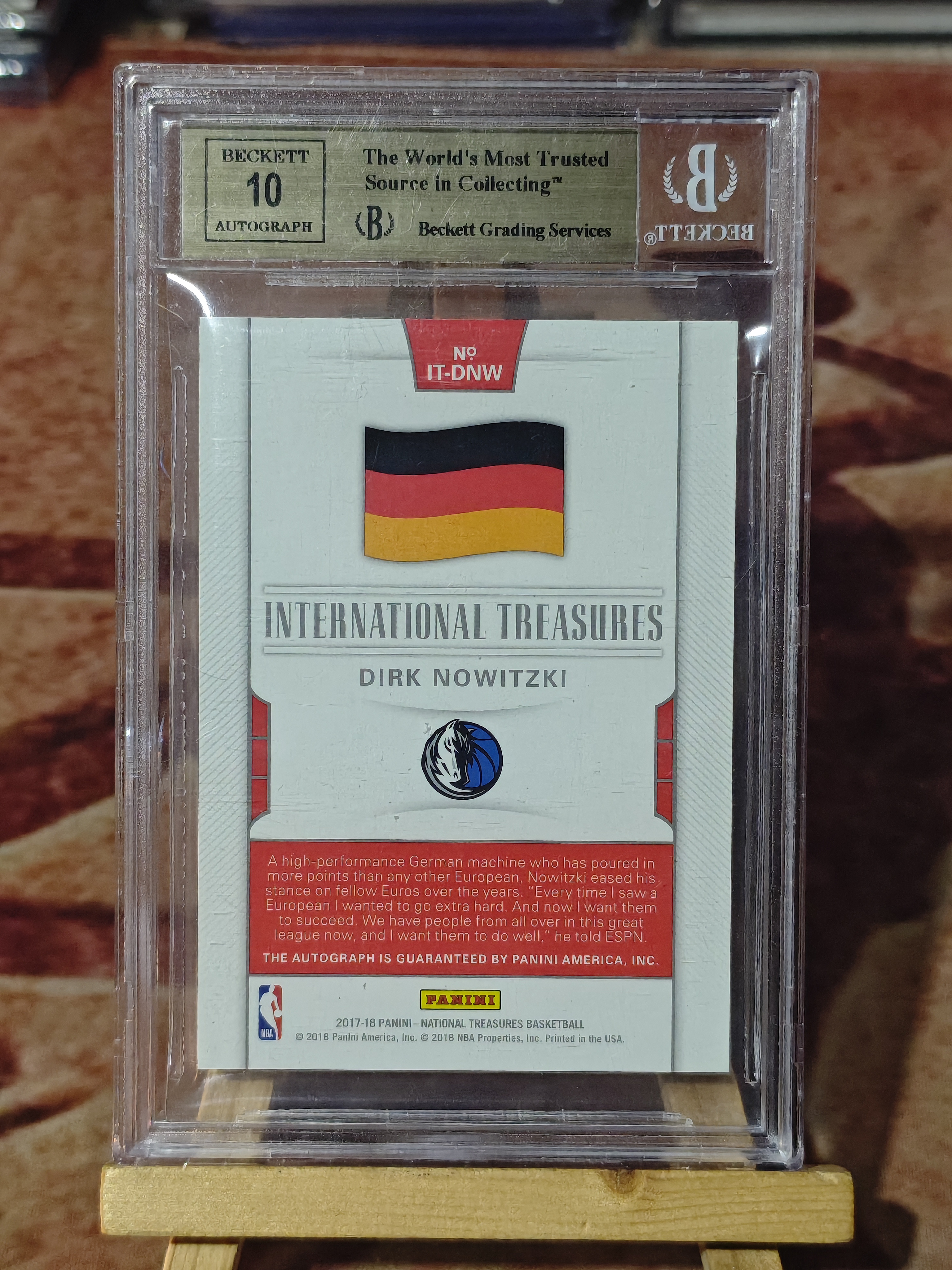 2017-18 Panini national Dirk Nowitzki 【科科代卖 吗丁啉】国宝 独行侠 小牛名宿 诺维斯基 诺维茨基 德国国旗签字 卡签 评级金标BGS9.5+10