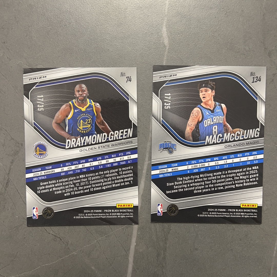 2024-25 Panini Prizm Black 追梦 扣篮王 35编 两张打包 不保卡品(干脆面代卖-拍前看商品描)