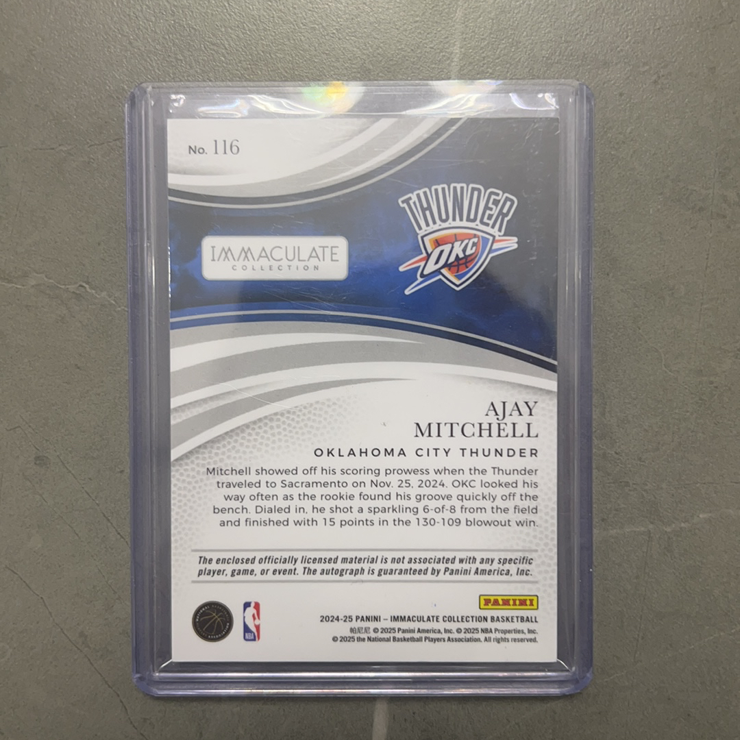2024-25 Panini Immaculate Ajay Mitchell 雷霆 阿杰伊 米切尔 RC 新秀 Patch 签字 卡签 rpa 蓝平行 49编 厚卡默瑕(干脆面代卖-拍前看商品描)