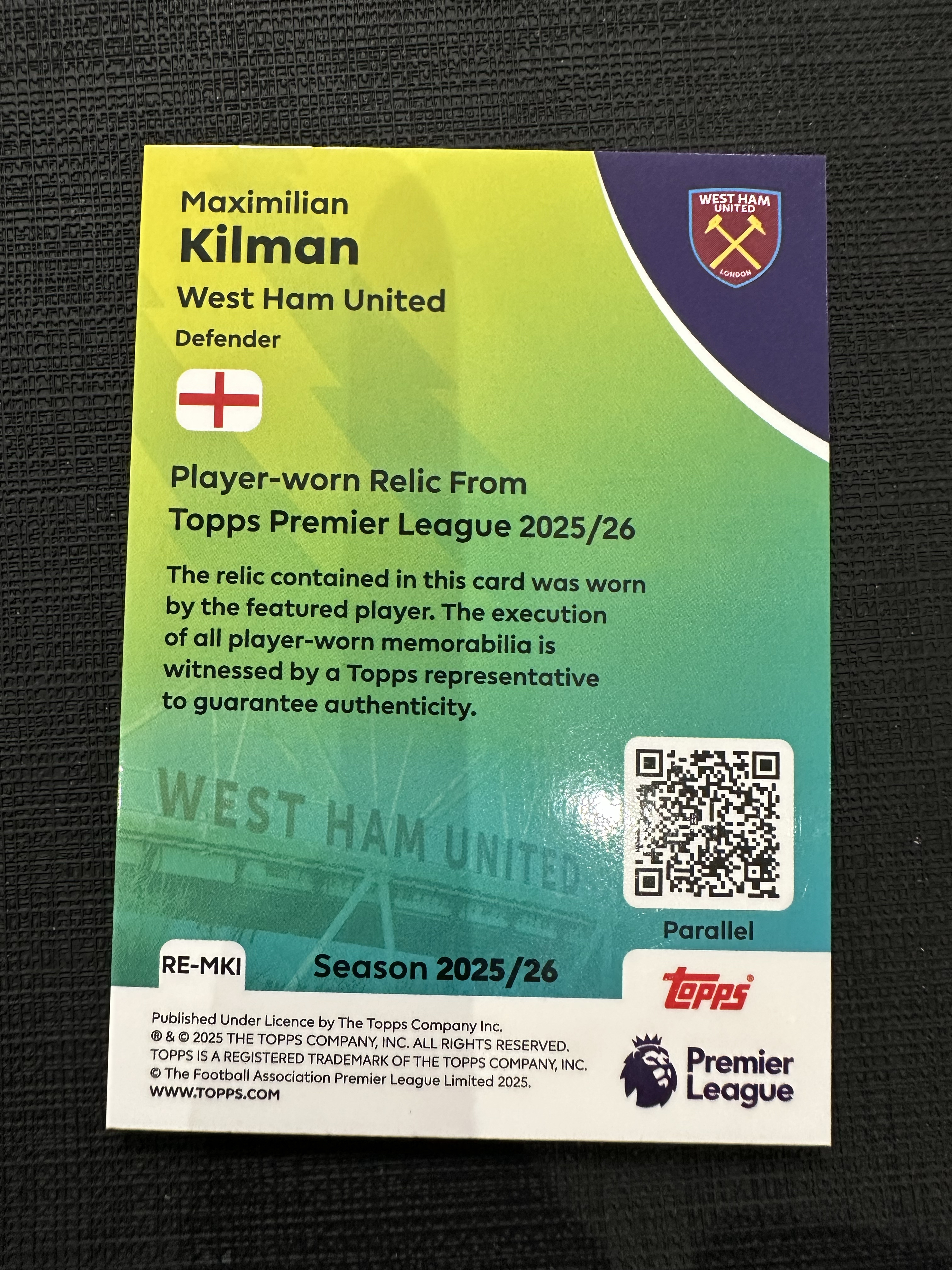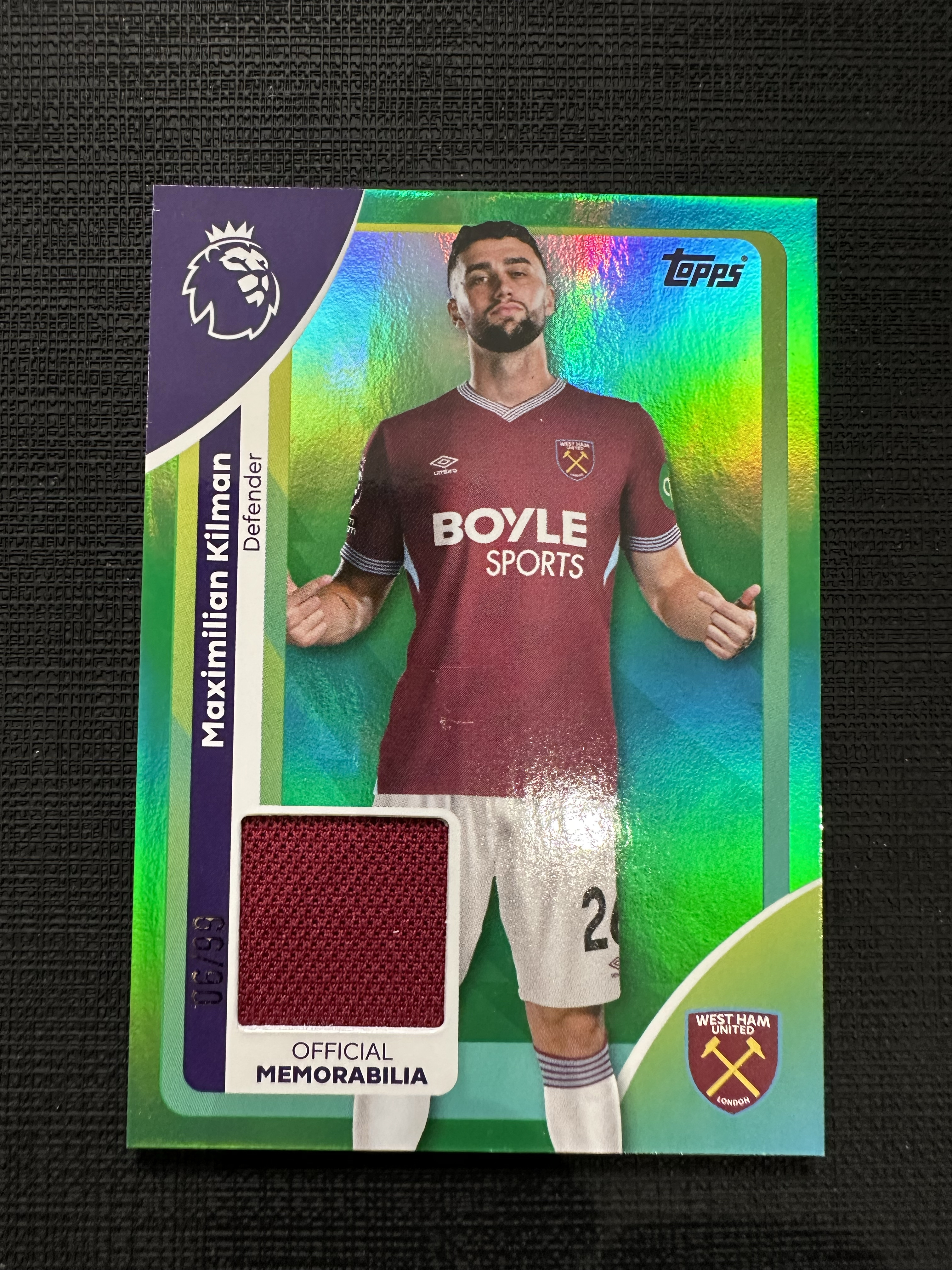 2025-26 Topps 英超 Maximilian Kilman 西汉姆联 英格兰 基尔曼 球衣物料/99编 切割 落场 【默认微瑕一日一快递 不累计 不发到付】卡卡a
