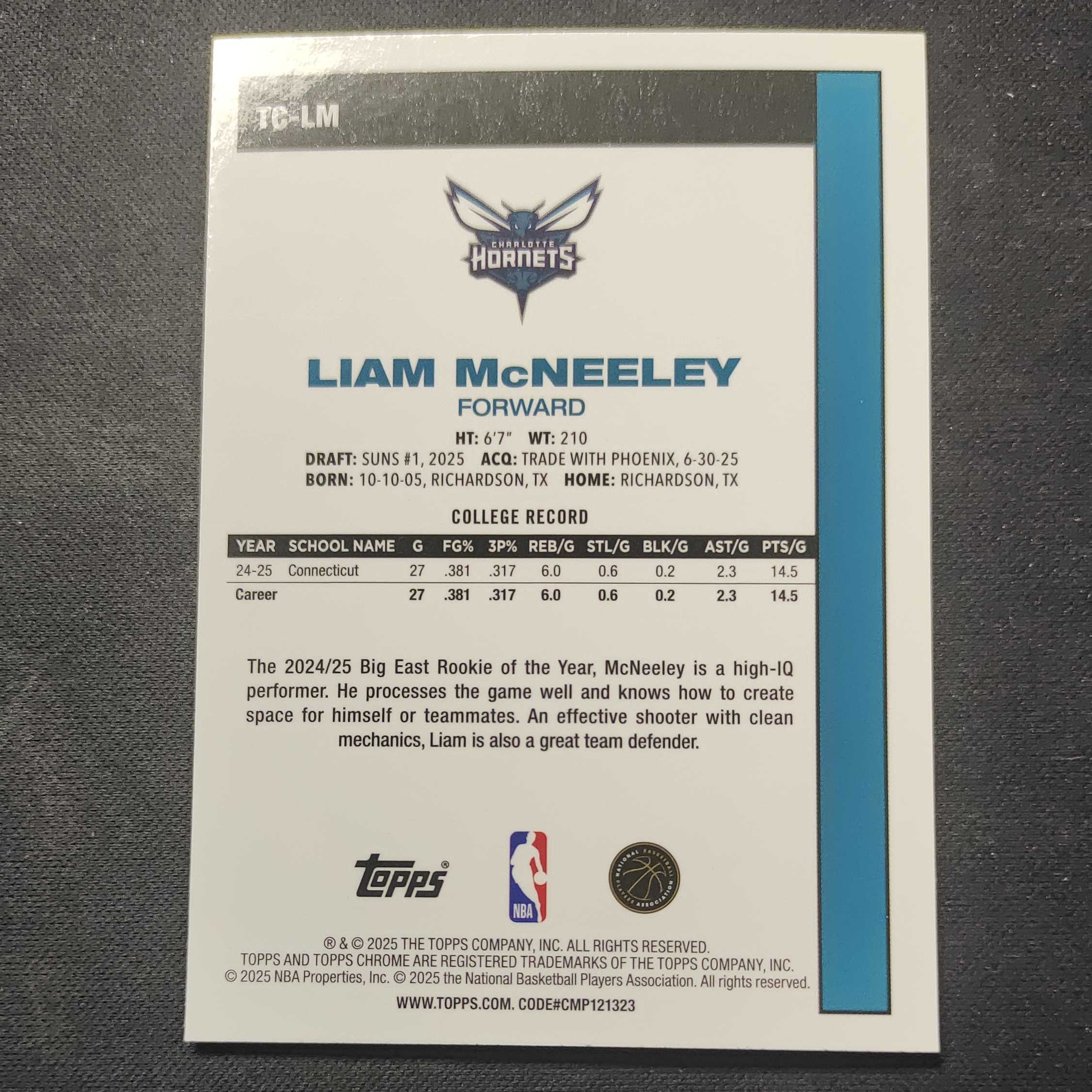 2025-26 Topps Basketball Liam McNeeley 【太阳球星卡社】TC 新秀 rc 黄蜂 利亚姆 麦克尼利 mojo折 Chrome 银折 卡品如图(泡泡龙)
