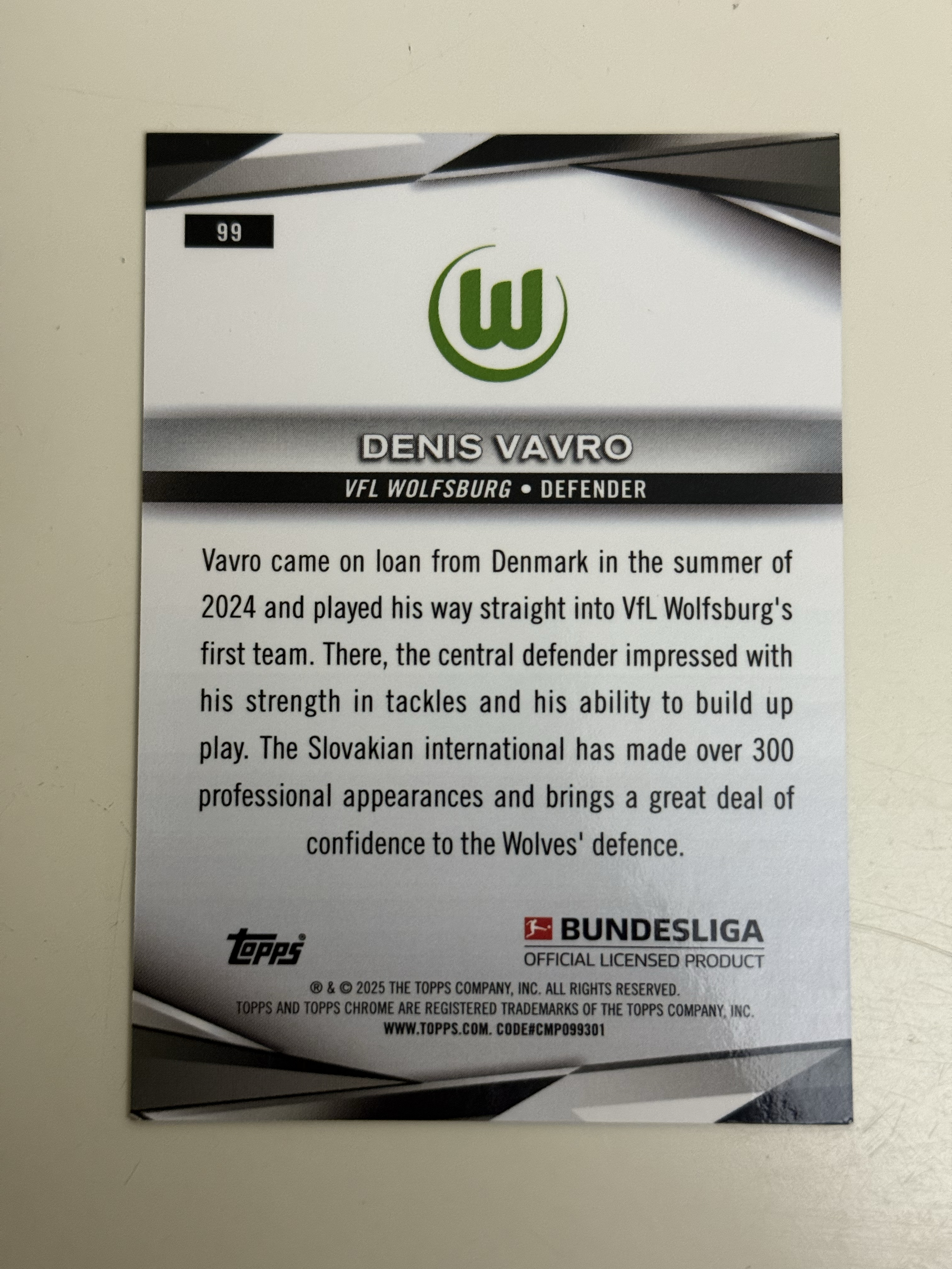 2024-25 Topps Chrome Denis Vavro 德甲tc 瓦夫罗 斯洛伐克 沃尔夫斯堡 199编 粉熔岩折 卡品如图 凑套收藏必