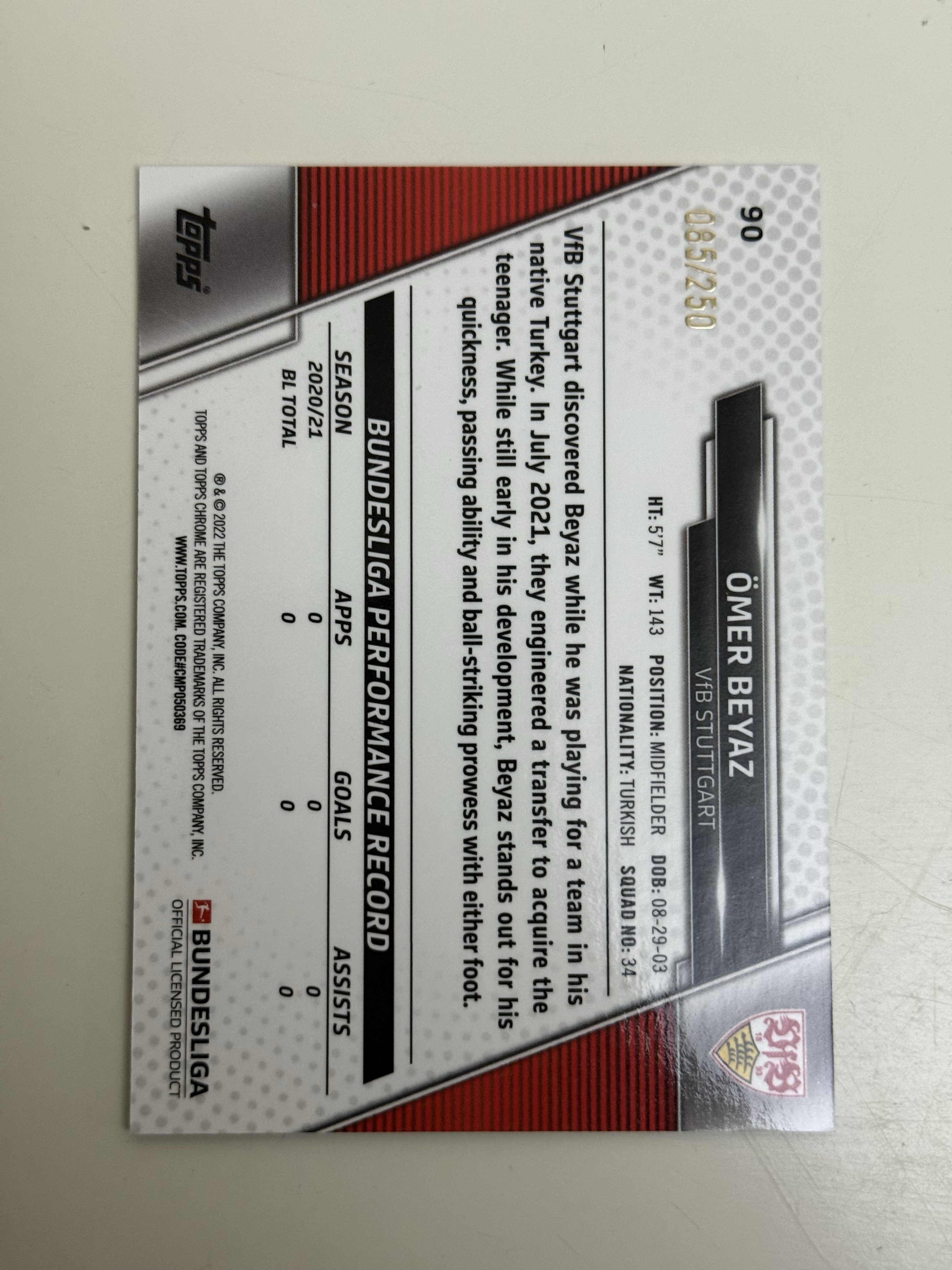 2021-22 Topps 德甲 Omer Faruk Beyaz RC 250编 棋盘折 新秀 base 凑套必备
