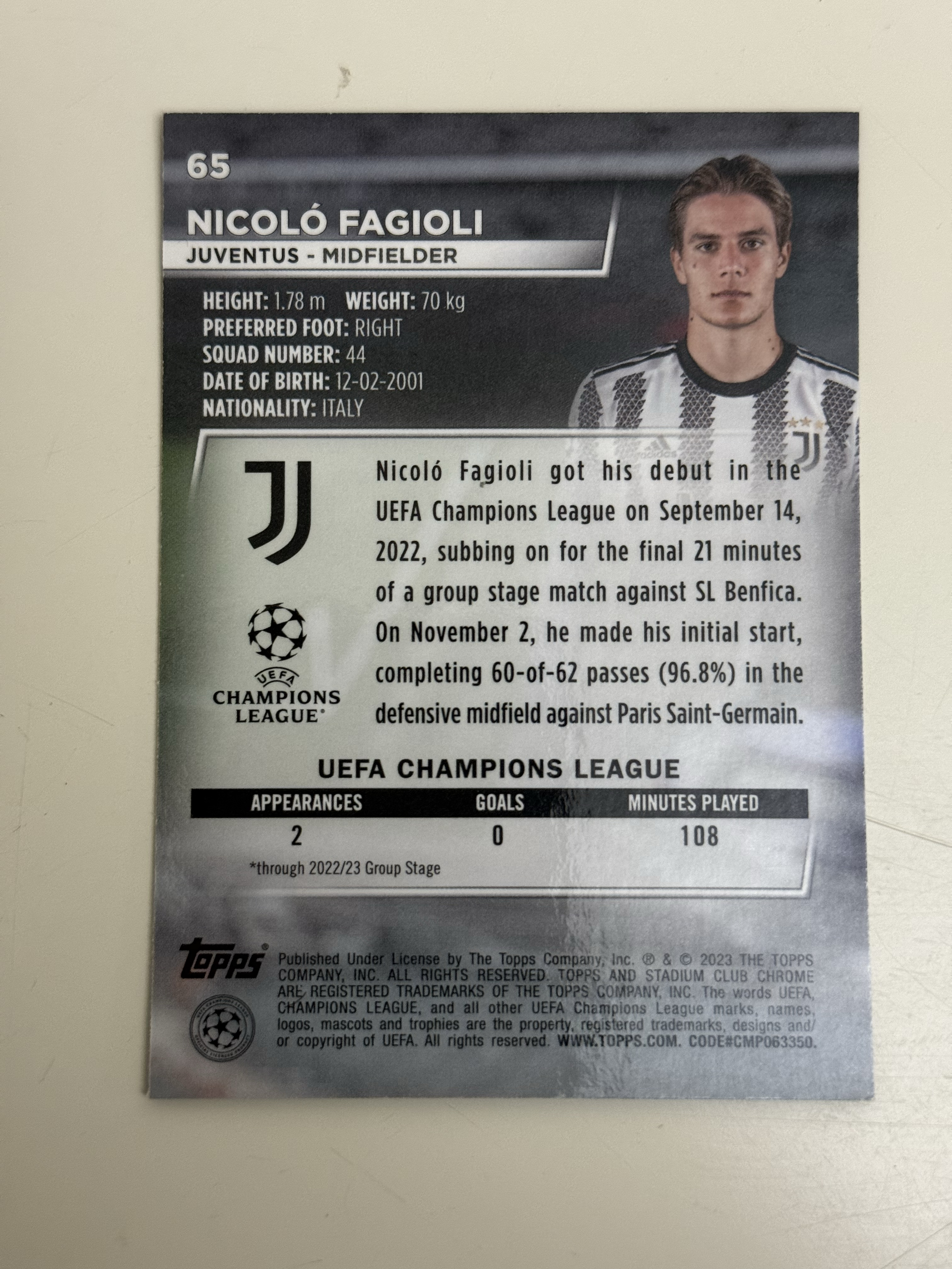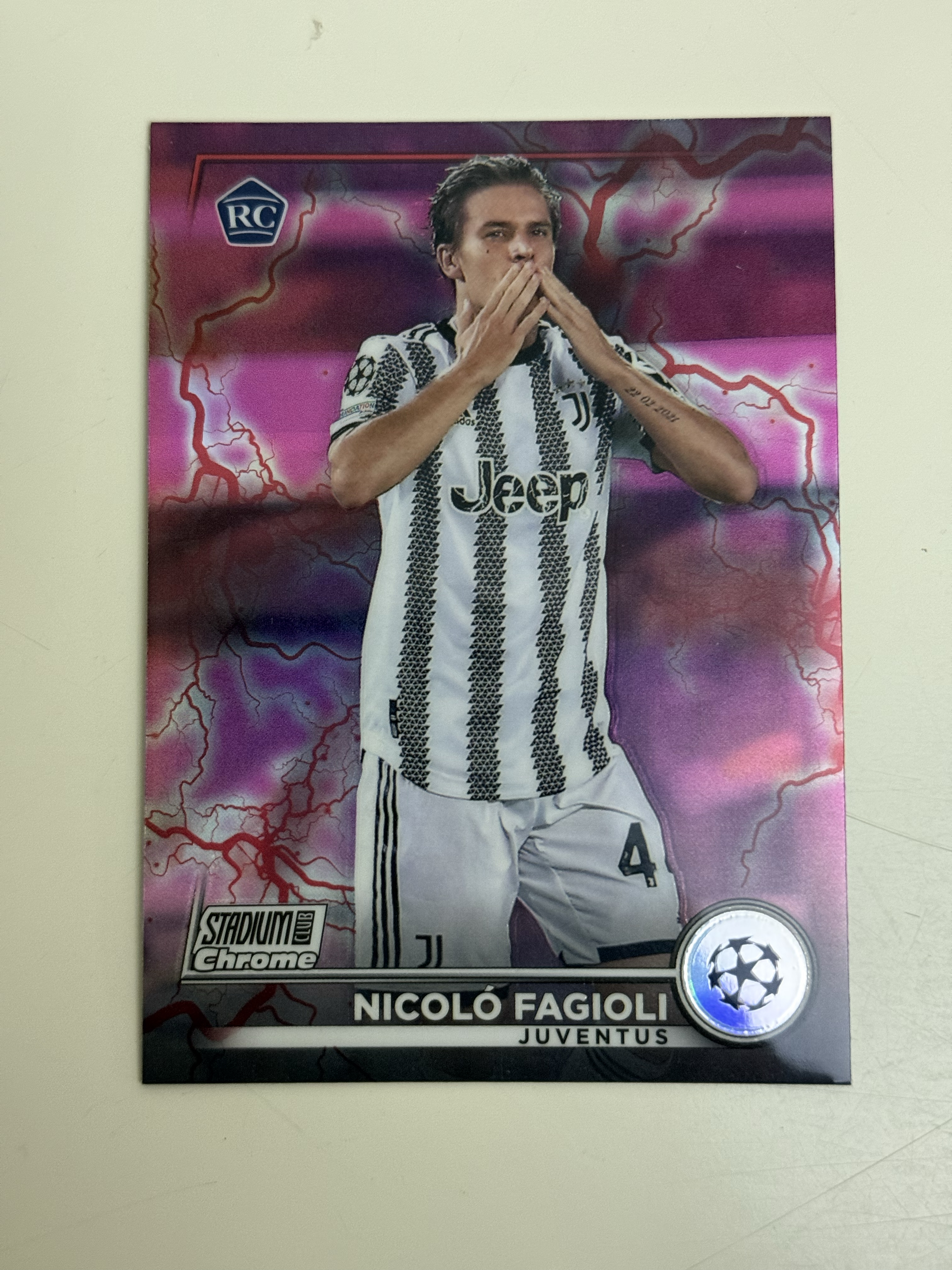 2023 Topps Stadium Club Chrome Nicolo Fagioli RC 欧冠竞技场 尤文图斯 法乔利 盒货 粉闪电折 新秀 磨痕