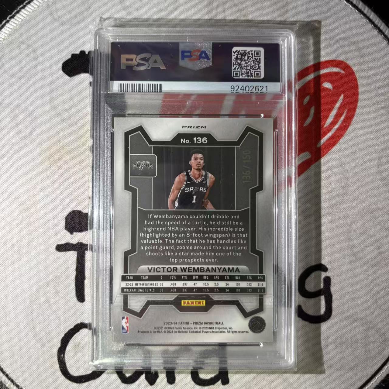 5:注意:手提、国宝、IMM、NOIR、等有较厚卡的系列、以及发行时间久远的老卡,有白边、白角属于正常卡品,镜面卡有小划痕属于正常通行品相;评级卡壳、原封砖上的划痕和破损、不属于品相问题;折射系列经常会有一道折射横线是印刷问题不属于卡品残次范畴。折射系列不保证金标,要评级追求完美卡品者请直接购买金标;评级卡以评级公司品控为准,一经售出不受理卡品相关问题;原封砖的卡如有明显品控问题会标明,否则不受理售后问题。以上如果您介意,请勿参加拍卖。