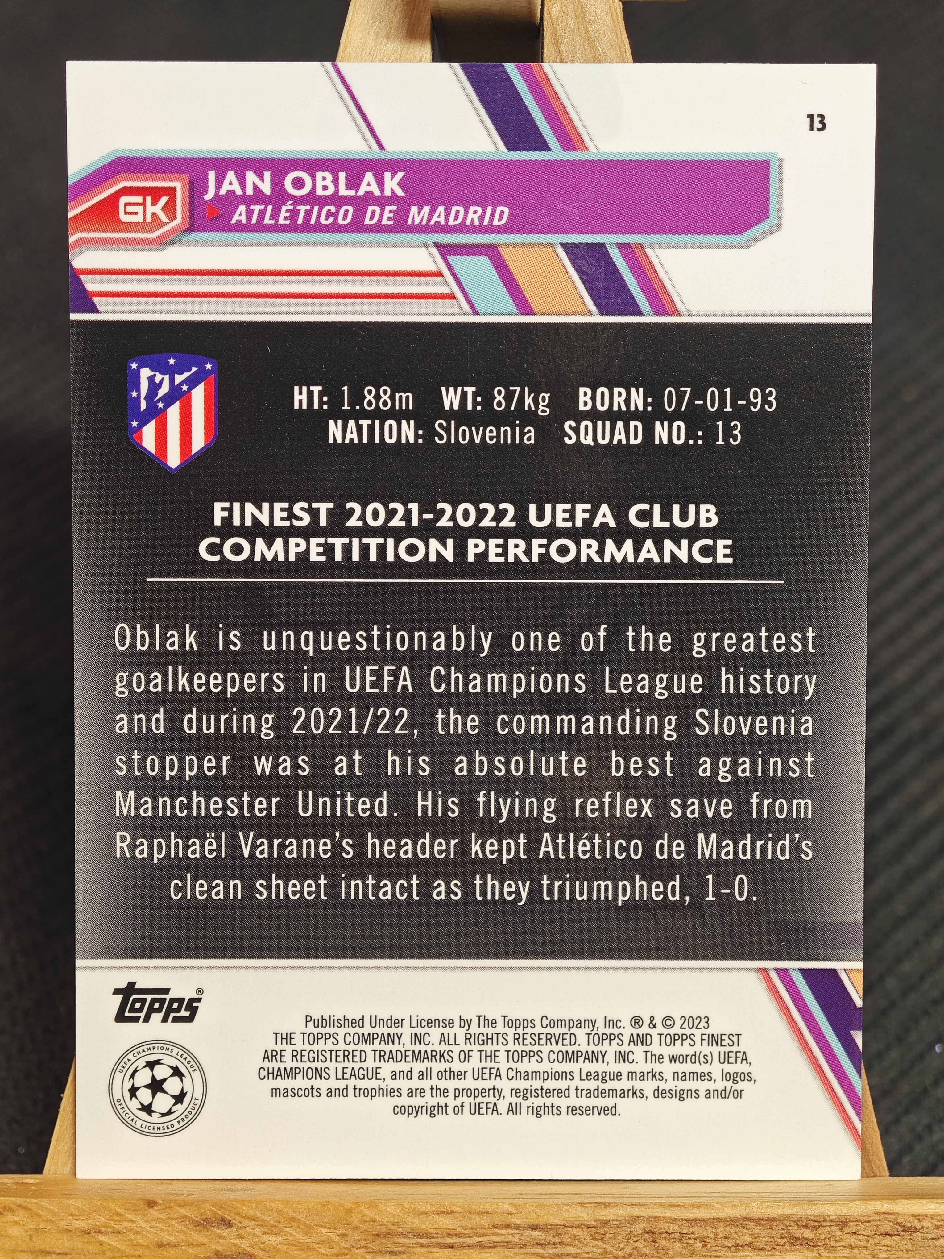 2023 Topps Finest Jan Oblak 欧冠 马竞 奥布拉克 蓝折 /250编 xx