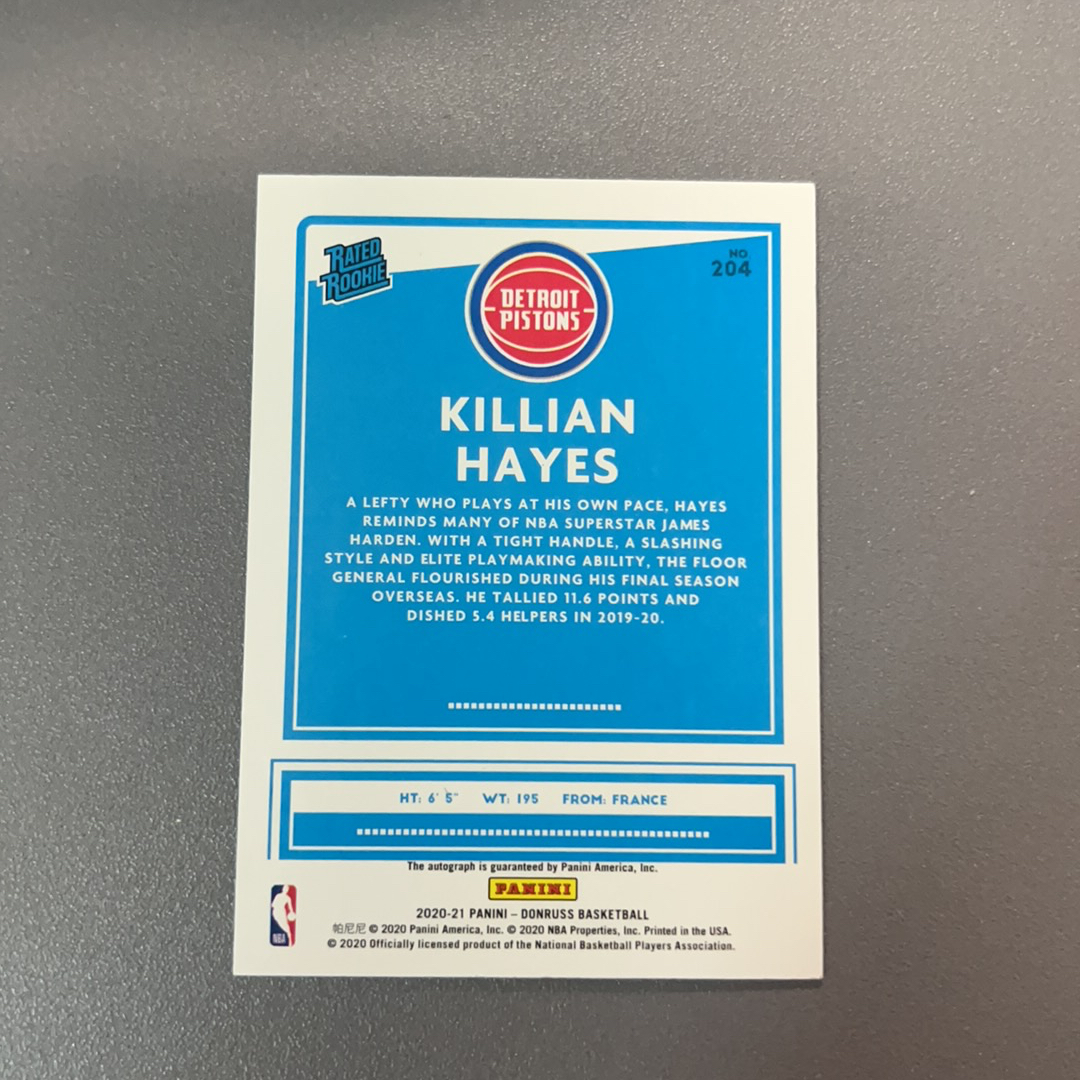 2020-21 Panini Donruss Killian Hayes 杜蕾斯 活塞 基利安 海斯 新秀RC 红金佛光折 折射 签字 签名 专收必备 卡品如图(老卡)