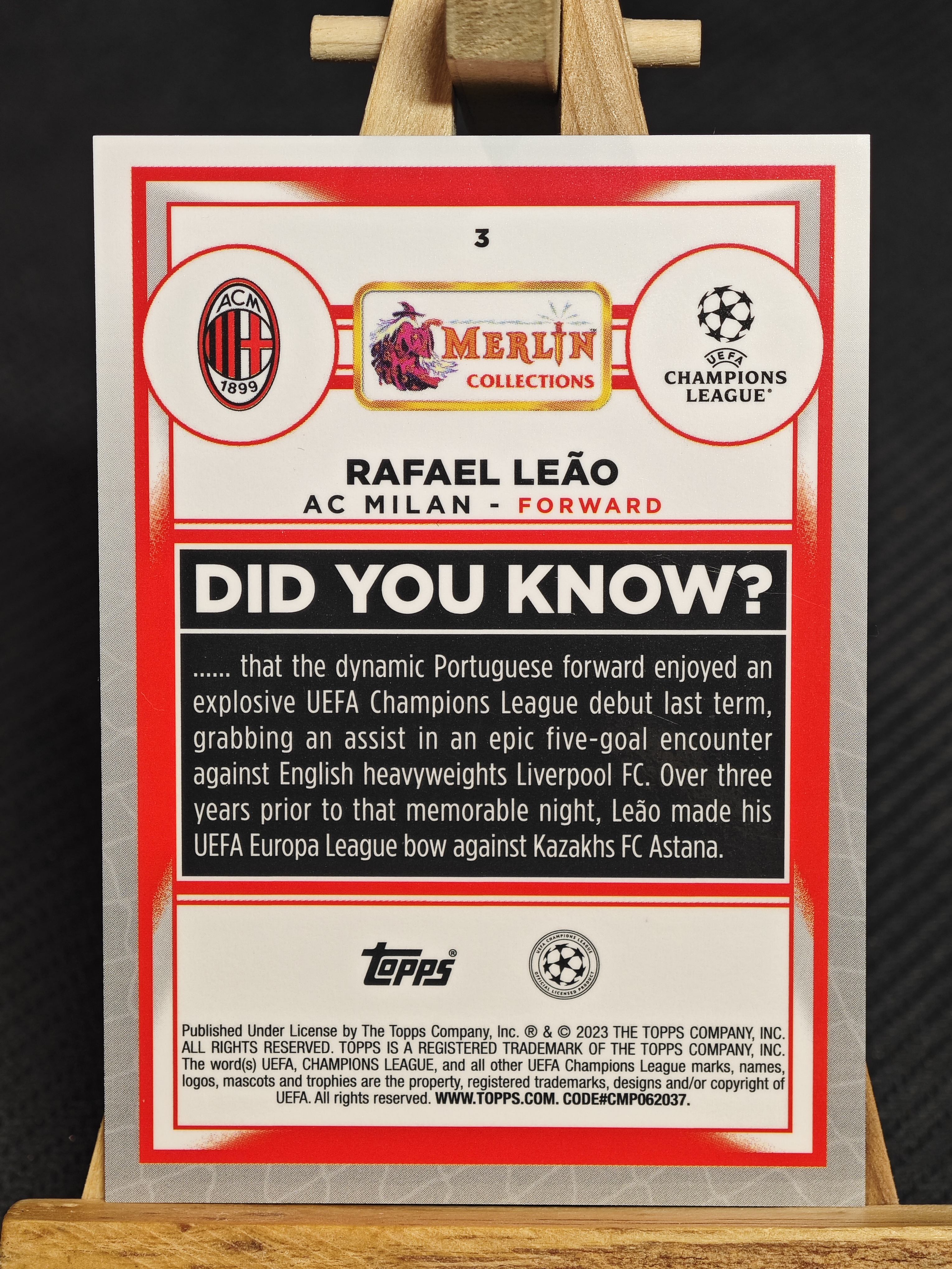 2023 Topps Chrome Merlin Rafael Leao 欧冠 Chrome 梅林 AC米兰 莱奥 319/350编  xx