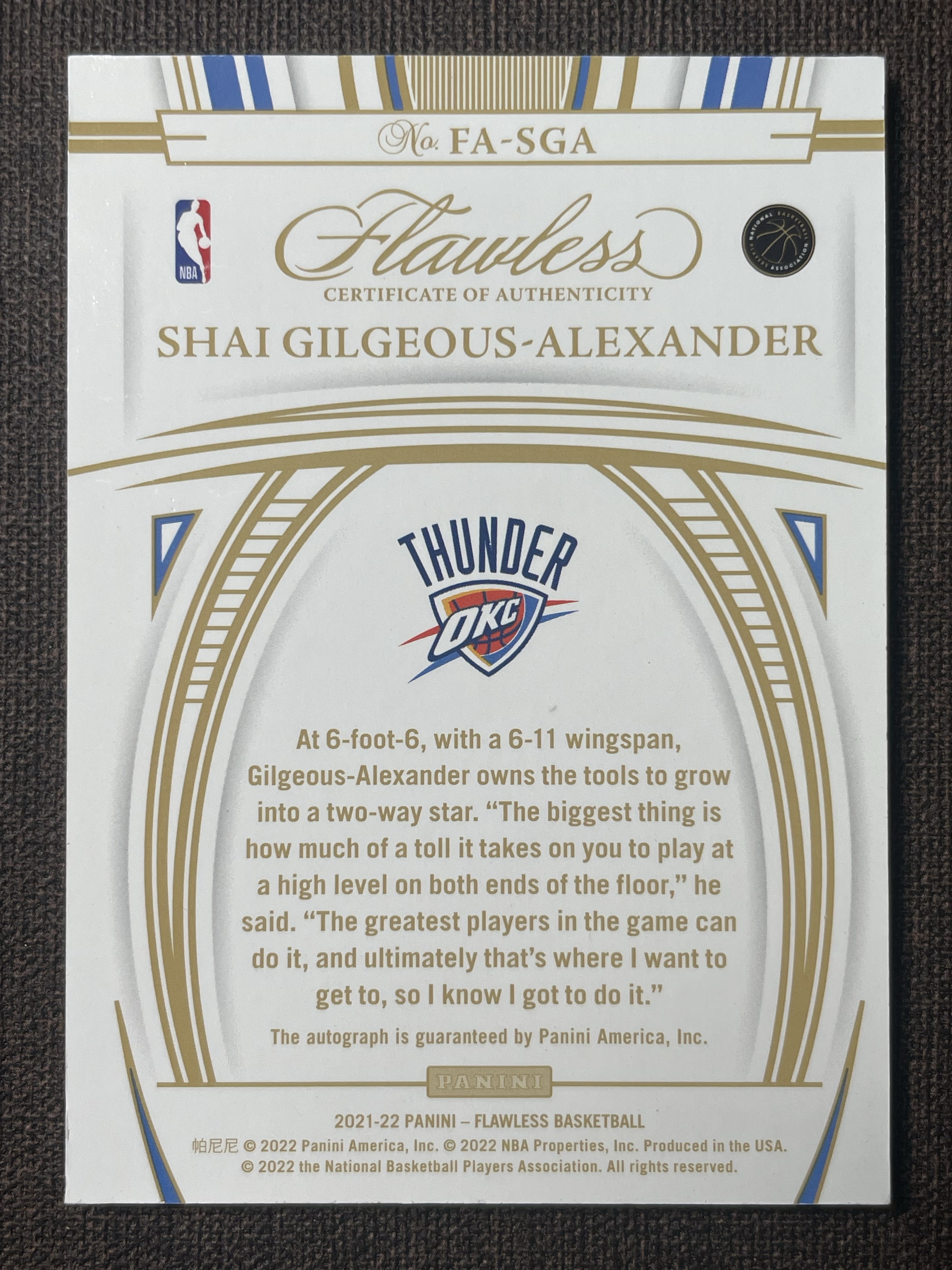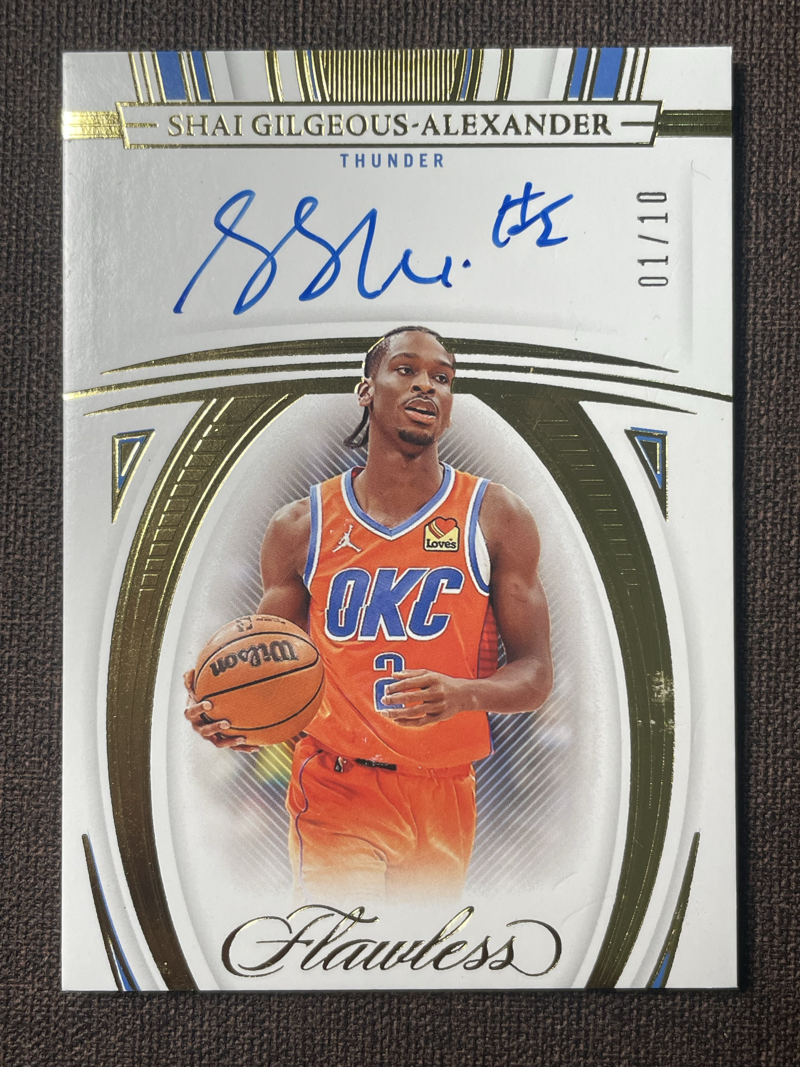 2021-22 Panini Flawless Shai Gilgeous-Alexander 【晨记拍卖】雷霆 亚历山大 手提 1/10编 金闪平行 签字 卡签 mvp 卫冕冠军升值空间大 微瑕如图