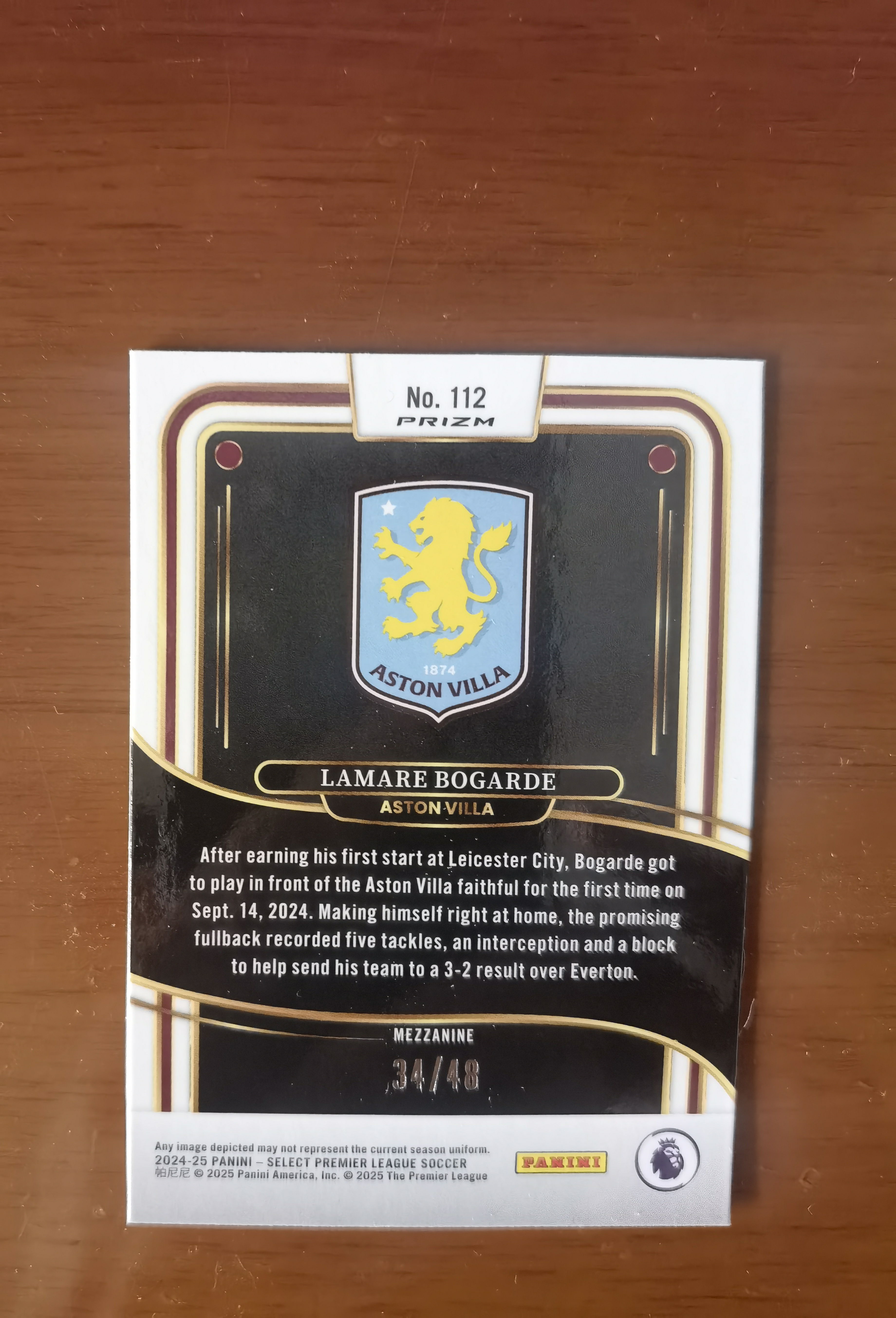 2025 panini prizm select 英超bogarde 博加德 阿斯顿维拉 RC新秀 龙鳞折 /48编 多图已拍仔细看图顺丰
