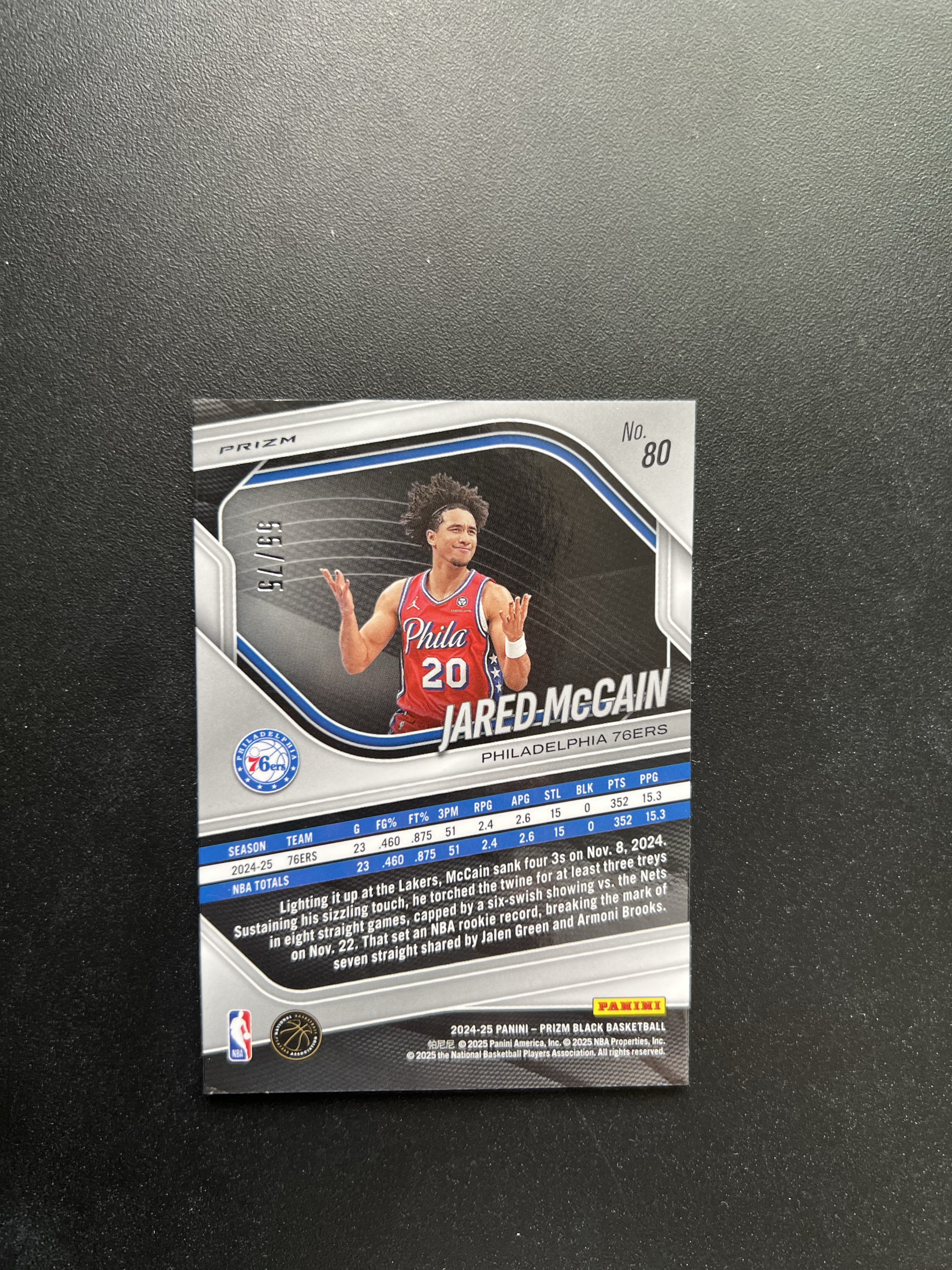 2024-25 Panini Prizm Black Jared McCain RC 76人 贾里德 麦凯恩 新秀 红格子折 55/75编 同队服配色 实卡精美 专收必备 卡品如图