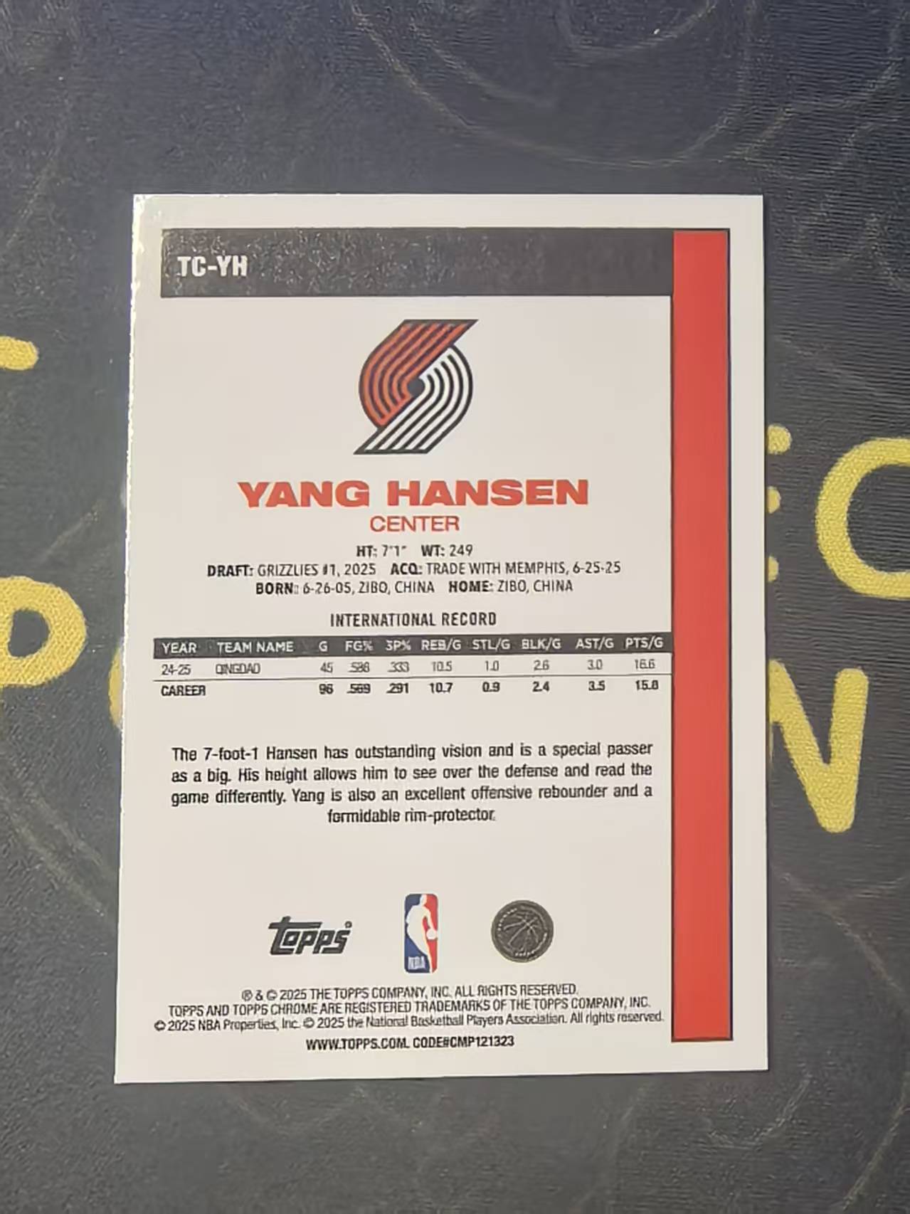2025 Topps Topps Yang Hansen Chrome 45周年 RC ssp 大比例 开拓者 折射 杨瀚森 稀有SSP 银迷宫MOJO折 专收必备