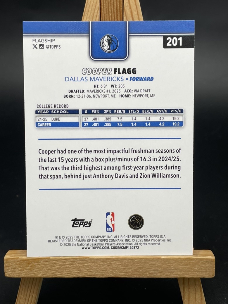 2025 Topps Flagship Cooper Flagg RC 【小哈拍卖-枫29】库珀弗拉格 新秀 第一版正base 大热状元 投资收藏 2