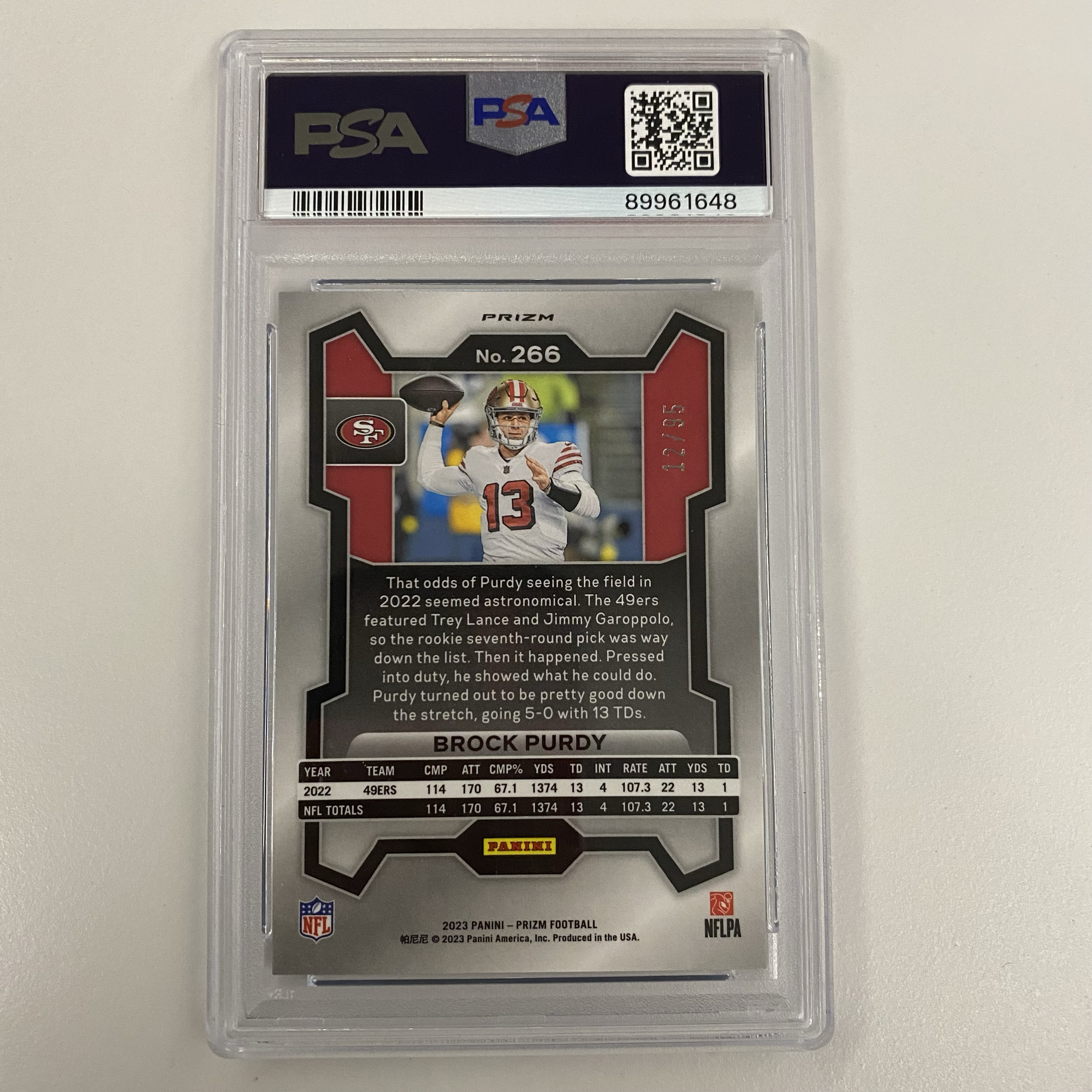2023 Panini Prizm Brock Purdy 布洛克 普尔迪 旧金山49人 12/95编 四分卫 蓝泡泡折 特卡 PSA10分