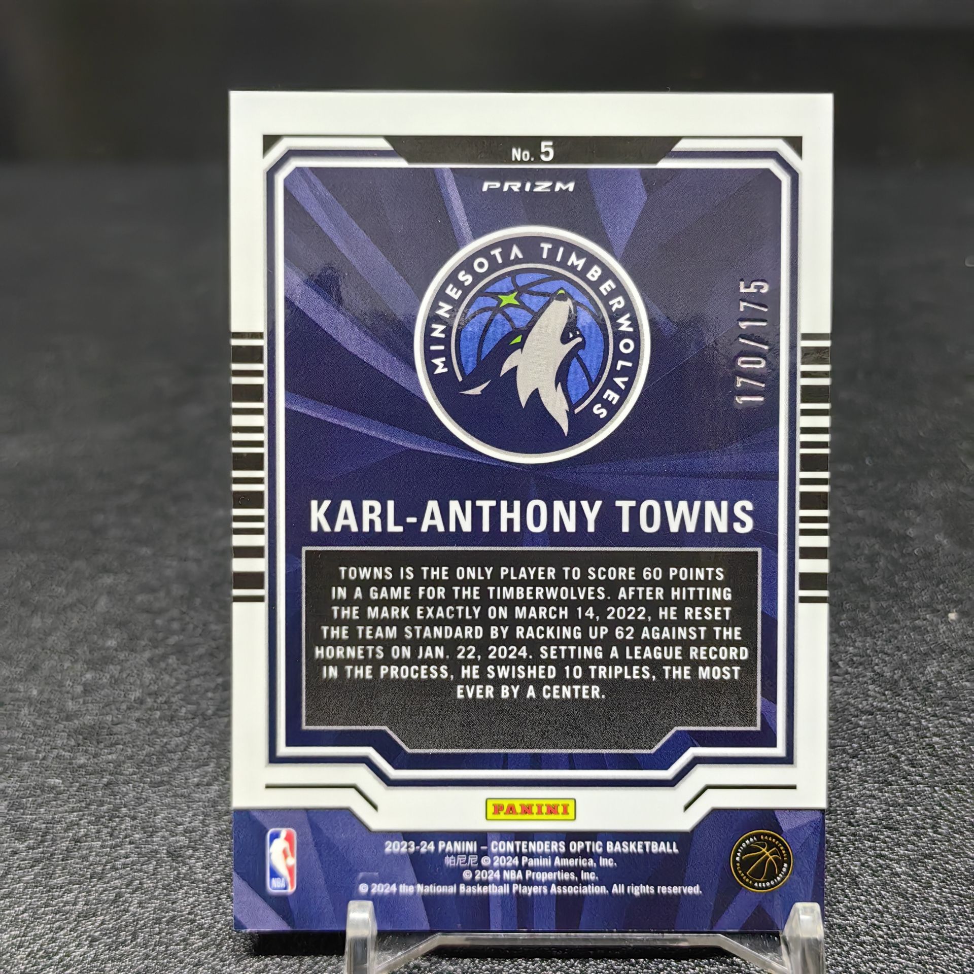 【浩行拍卖 截标预付82%】2023-24 panini contenders optic karl anthony towns 球票 森林狼 唐斯 数据特卡 红碎冰折 折射 170/175编 专收必备 瑕疵看图「墨惋」1029C01龘