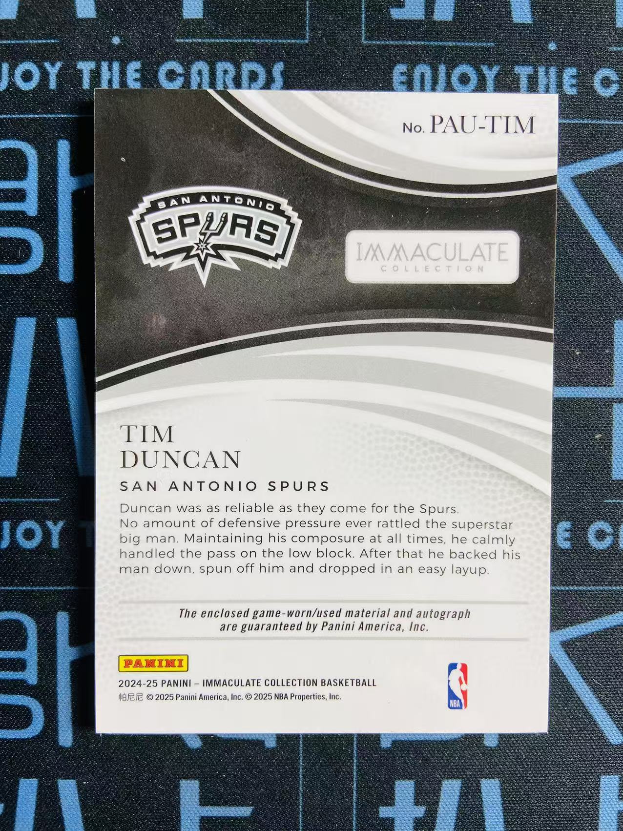 【要预付 找扒卡】2024-25 Panini Immaculate Tim Duncan imm 蒂姆 邓肯 石佛 名宿 马刺 签字 卡签 4/10编 PA 球衣物料 金版 背号签 瑕疵如图 投资收藏必备 决赛1031BK02